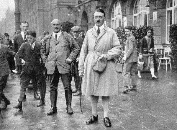 Adolf Hitler and Julius Streicher during a visit to Nuremberg in 1923 in front of the “Deutscher Hof”.