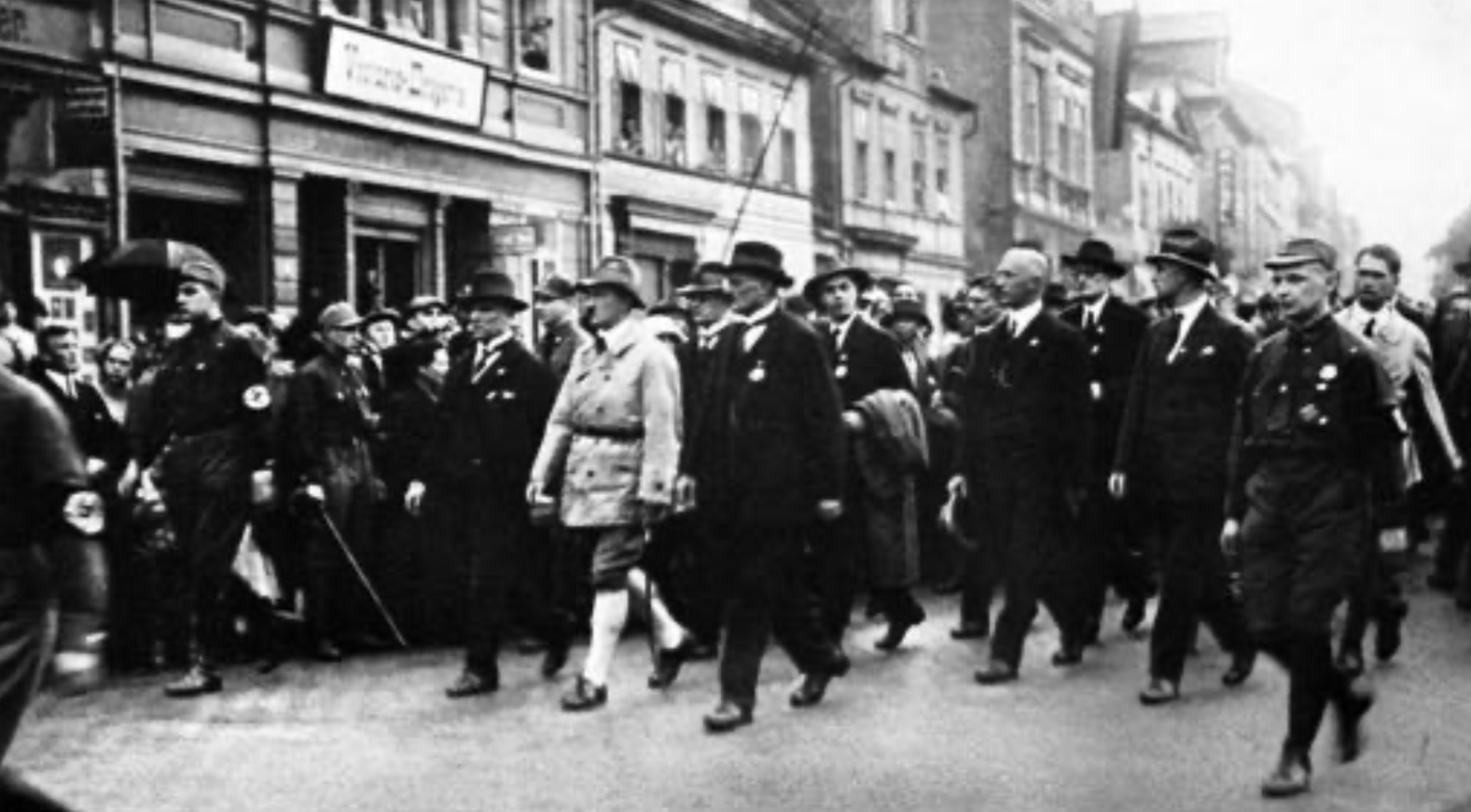 Adolf Hitler with Rudolf Hess and Erich Ludendorff at a Nazi March through Munich on 11 May 1926.