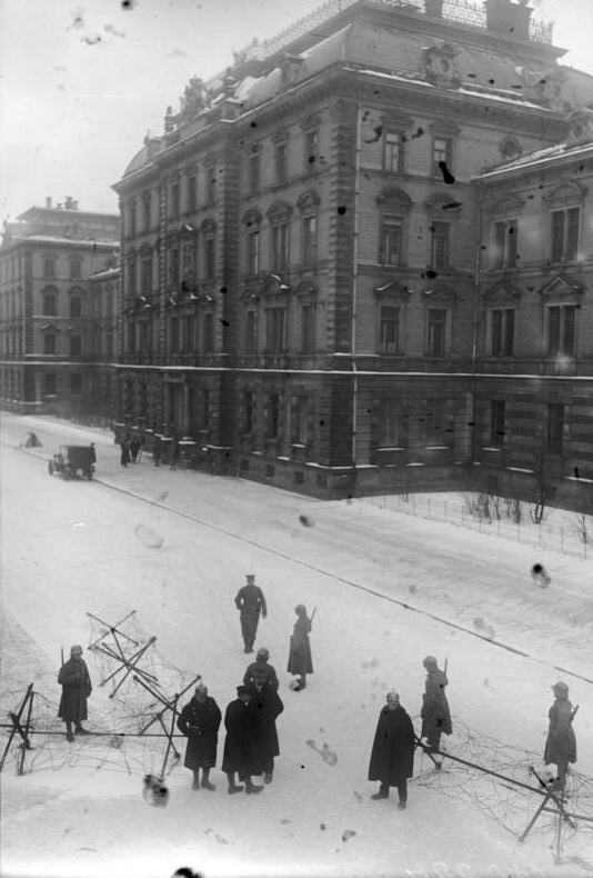 This is a photograph of the Infantry School of the Reichswehr as it appeared in February 1924 at the start of the Beer Hall Putsch Trial.