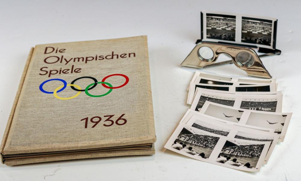 Stereoscopic photography is a distinctive visual medium for viewing photos in 3D and has been around since the 19th century. Raumbild Verlag in Munich was a publisher that specialized in stereoscopic publications. These books were very popular in Germany before World War II, when Raumbild mainly produced books for tourists and erotic publications. As National Socialism in Germany grew, the publisher switched its focus to political propaganda. Raumbild worked with film maker Leni Riefenstahl on a stereoscopic photo-book about the 1936 Olympic Games in Berlin. Raumbild also produced several books in partnership with Hitler’s official photographer Heinrich Hoffmann.
