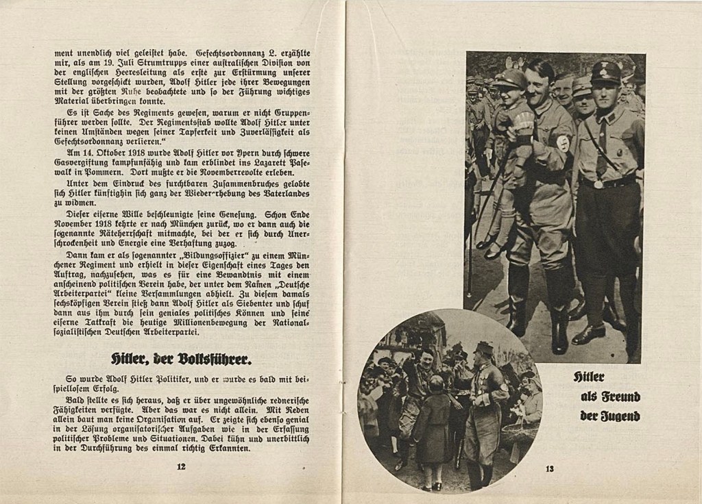 ‘Tatsachen und Lügen um Hitler‘ was a late March or early April 1932 pamphlet publication that translates to ‘Facts and Lies About Hitler’. Released shortly before the second round of the Reich Presidential election on 10 April 1932. It presents Hitler as a self-made man who has been slandered by his opponents, and who is the only person capable of saving Germany. It was aimed at the electorate in general rather than a specific group.