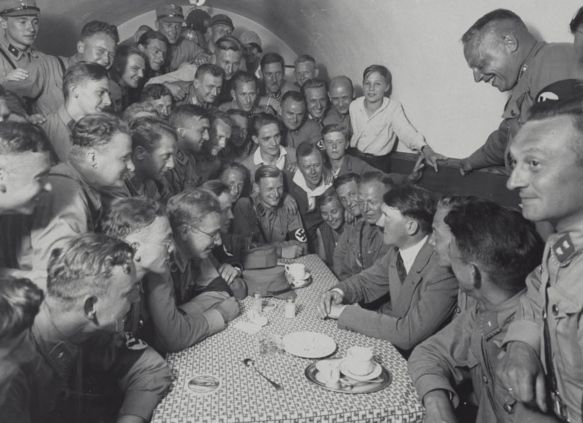 Group shot in the Brown House basement casino with Adolf Hitler on 8 November 1933 by Heinrich Hoffmann, Adolf Hitler’s official photographer, and a Nazi politician and publisher, who was a member of Hitler’s intimate circle.
