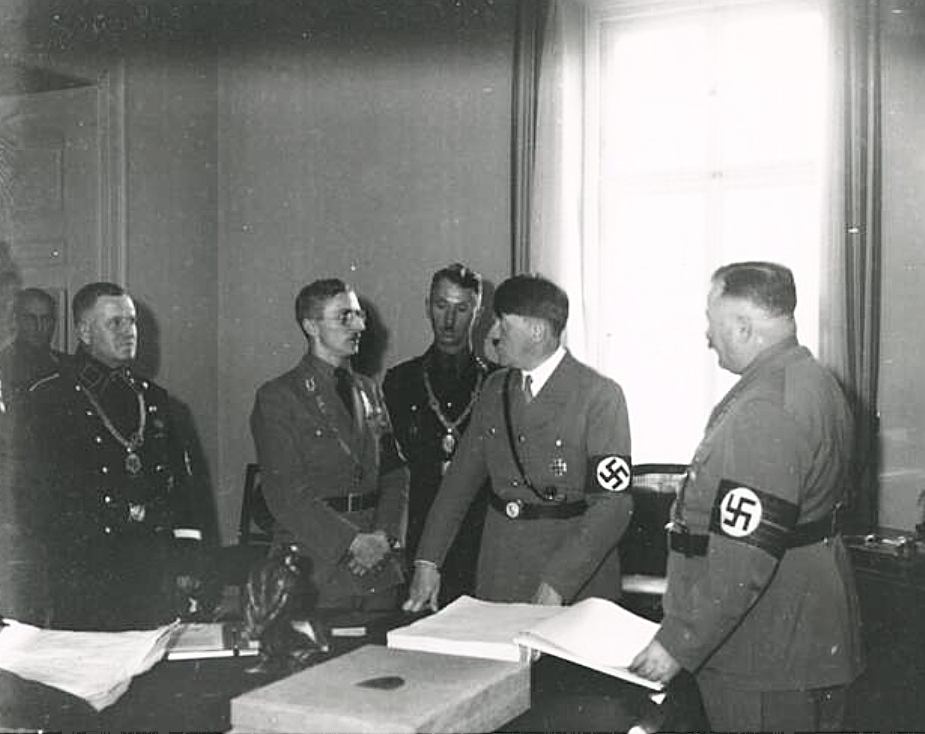 Adolf Hitler receives the honorary citizenship of the city Munich in his office at the Brown House on 9 November 1933, the 10th anniversary commemoration day of the Beer Hall Putsch.