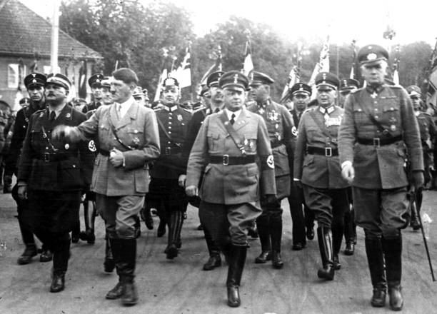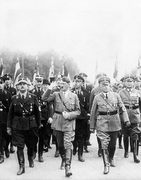 Adolf Hitler, Julius Schaub and Ernst Roehm at the 1932 Gautag of Gau Essen on 30 October 1932. Adolf Hitler spoke at the Westfalenhalle in Dortmund on this day as part of the 1932 election campaign. After the National Socialists seized power, the Westfalenhalle was often used for propaganda purposes. Adolf Hitler with Ernst Roehm circa 1931.Adolf Hitler converses with Ernst Röhm before delivering a speech on the appeal of the SA in the Mitteldeutschen Kampfbahn stadiumin front of 18,000 listeners in Erfurt on 18 June 1933. After his entry in the Golden Book in the Town Hall in the presence of the Prime Minister of Hungary Gyula Gömbös, he took his acceptance of a march of 60,000 of the SA of Gau Thüringen on the Friedrich-Wilhelm-Platz in front of 70,000 spectators.Adolf Hitler goes to the tribune with his staff at the SA Aufmarsch Gruppe Nordmark rally in Kiel on 7 May 1933. Behind him: Chief of Staff Ernst Röhm.