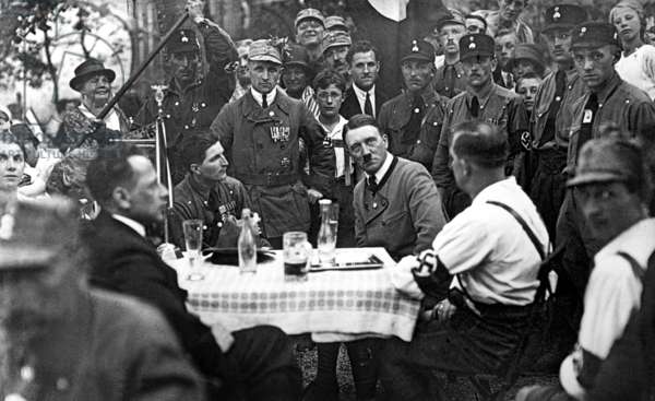 Hitler was unanimously elected chairman in July of 1921 after an ongoing power struggle with Drexler, who was then pushed aside and assigned the title “honorary chairman.” Under Hitler’s control, the Nazi Party grew into a mass movement that ruled Germany as a totalitarian state from 1933 to 1945. It was also at this particular July 29th party gathering, held at the Hofbräuhaus, that Adolf Hitler was introduced as Führer of the Nazi Party, marking the very first time that title was publicly used to address him.