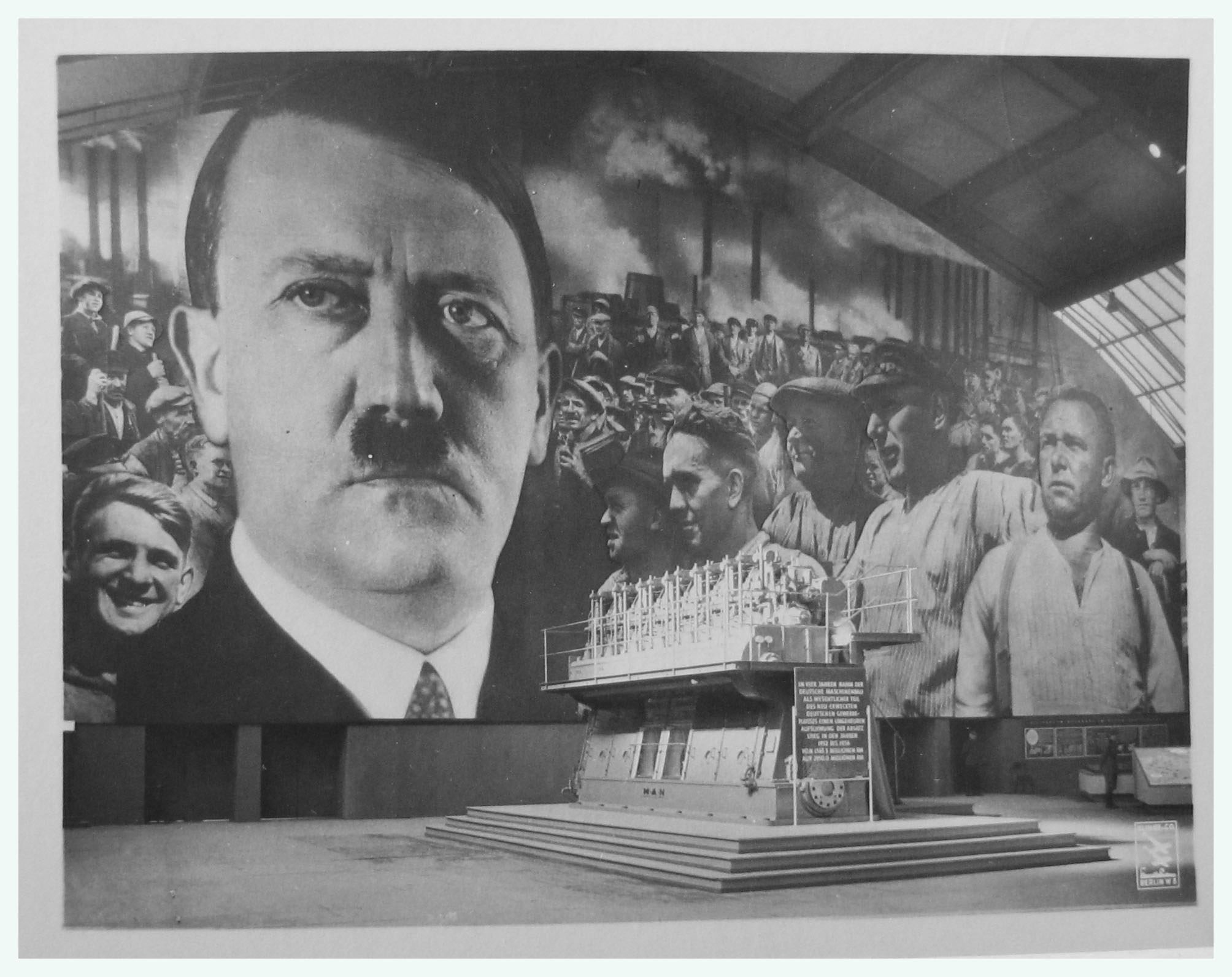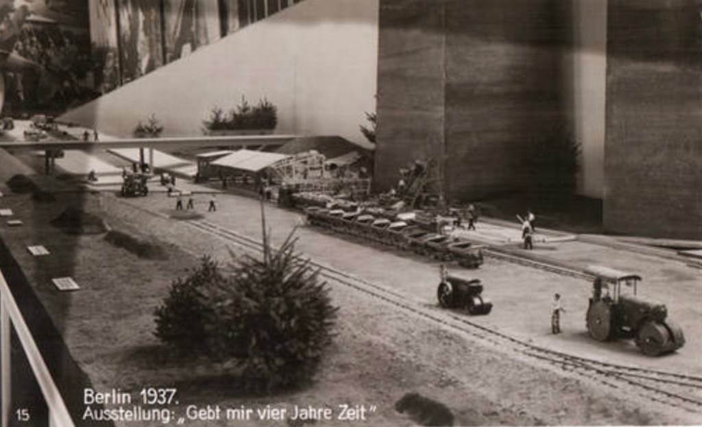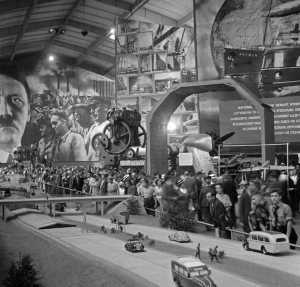“Gebt mir vier Jahre Zeit’’ demonstrated just how much had been achieved since Adolf Hitler became Chancellor and had been delivered on his promises since his first radio address to the German people on 1 February 1933. It showcased major publics works projects undertaken during Hitler’s leadership, like the building of the Autobahn super highway. Ominously, the exhibition also featured military hardware in prominence – tanks, artillery, a submarine, and a stunning display of modern aircraft. Huge photo panels of Nazi youth, Wehrmacht soldiers, and Adolf Hitler backed by the industrious multitudes revealed a nation poised to take its ‘rightful’ place in world affairs.