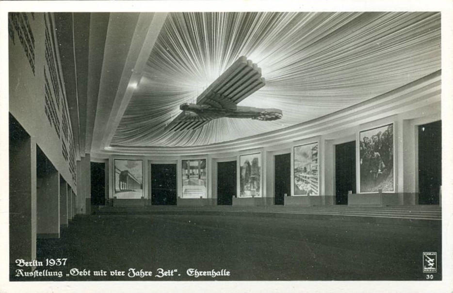 “The exhibition “Give me four years of time” is intended to provide an account of four years of National Socialist construction in all areas of our German life in comprehensive pictorial, statistical and factual representations. This exhibition is therefore the most eloquent document for the fulfillment of a greater national promise, for the fulfillment of a German hope and for the realization of a German faith. With this exhibition, the German nation honors the Führer and his work.”