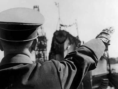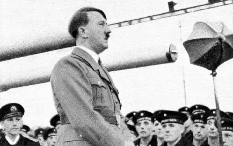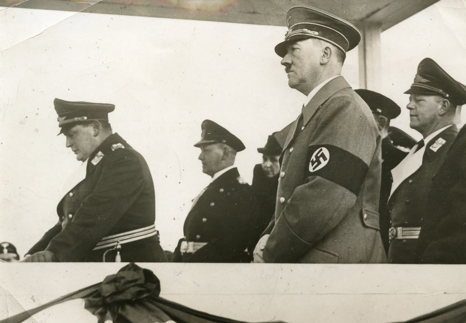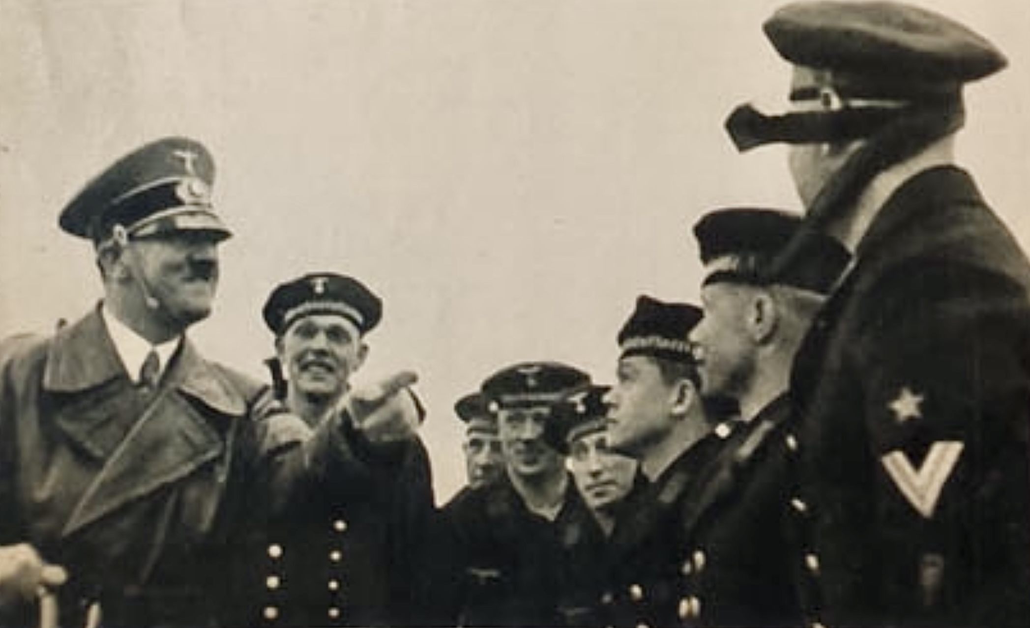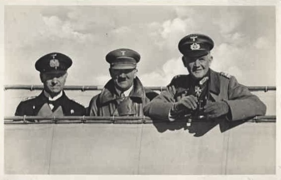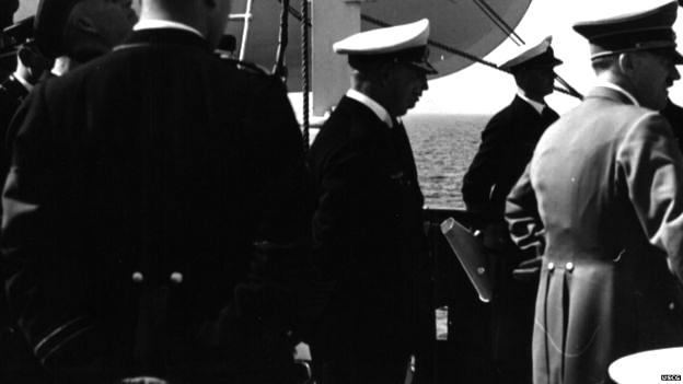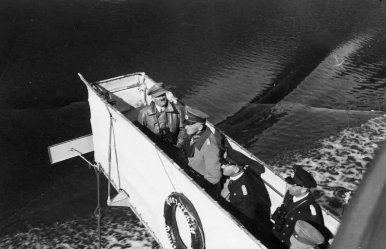 Adolf Hitler stands in front of the Reichskriegsflagge on the battleship Deutschland between Swinmünde and Memel on 23 March 1939.Adolf Hitler on the battleship “Deutschland” in the harbor at Memel on 23 March 1939.Adolf Hitler on a unit of the Navy visiting the captured Gdynia naval base in Poland on 21 September 1939. The Germans’ main push towards Gdynia had begun on 8 September and they captured Gdynia six days later on 14 September.
