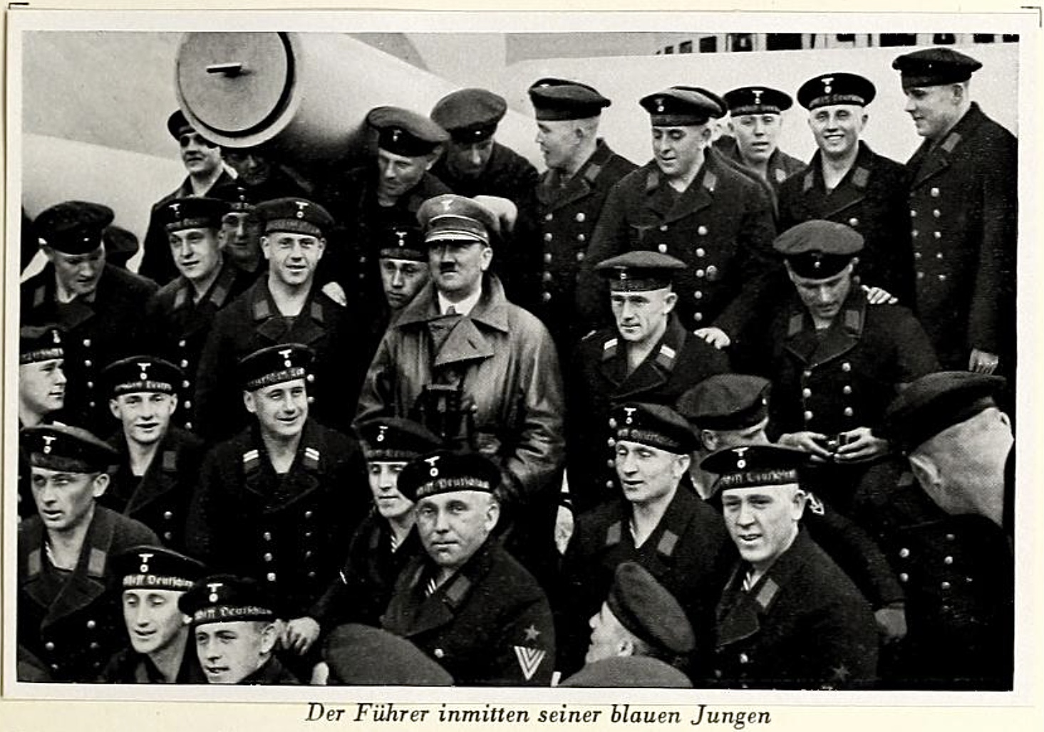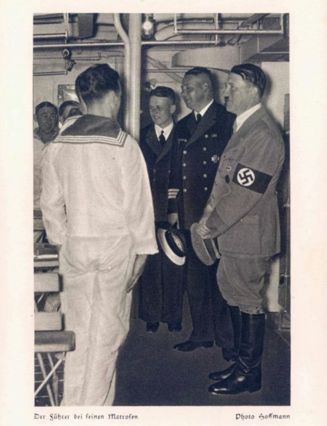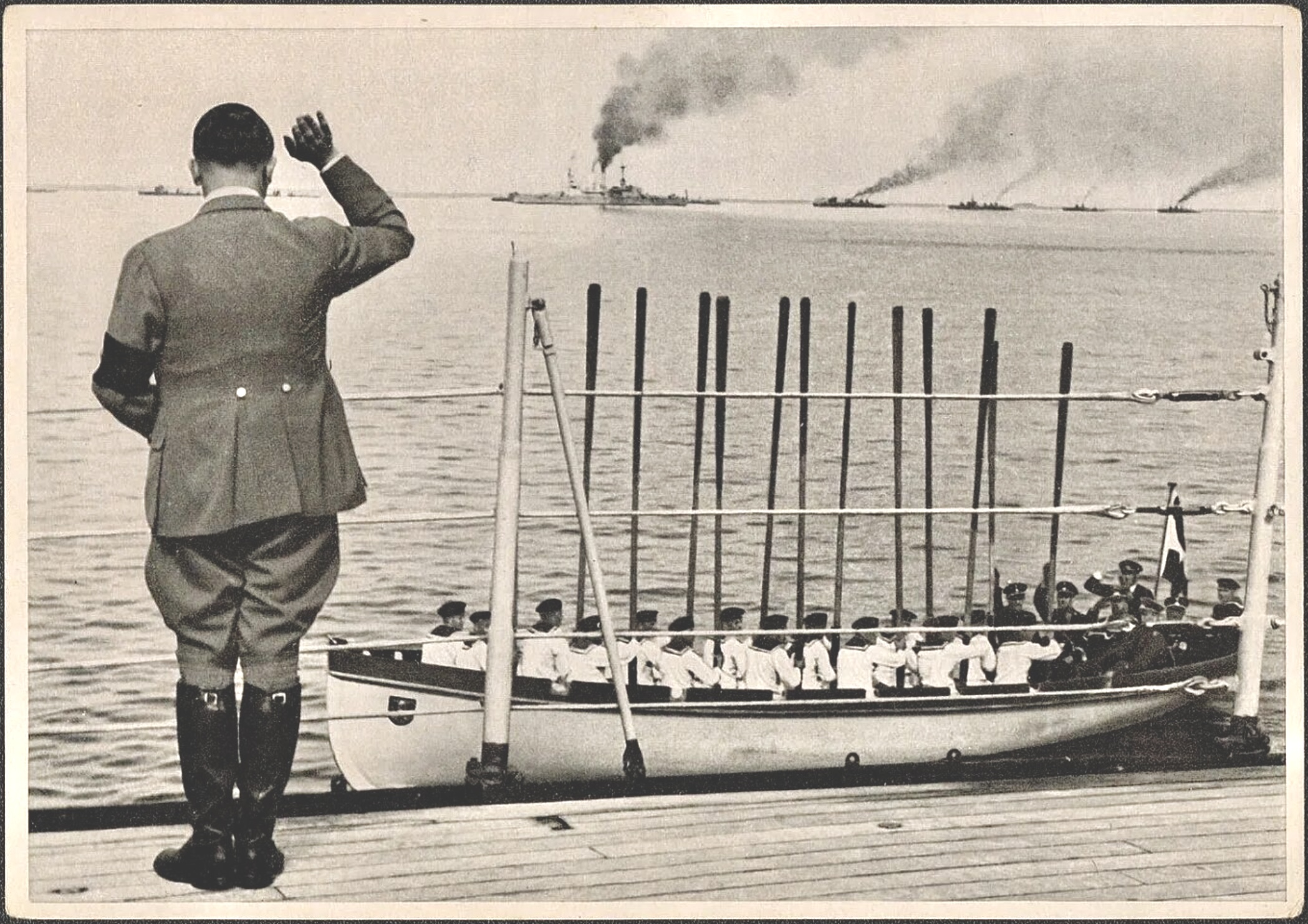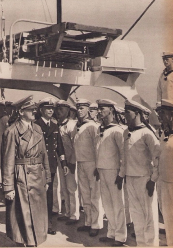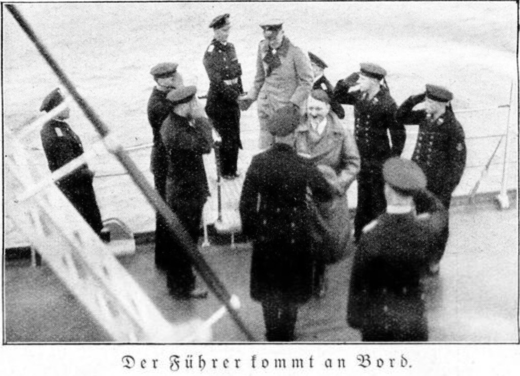 Reich Chancellor Adolf Hitler visits the line ship “Schleswig-Holstein” before delivering an address to the workers of the Blohm & Voss shipyard in Hamburg on 17 August 1934. Hitler later made his lone campaign speech from the balcony of the Hamburg town hall on the referendum on merging the posts of Chancellor and President. Adolf Hitler reviewing the battleship SMS ‘Schleswig-Holstein’, Hamburg, Germany, on 17 August 1934, acknowledging the salutes of the crew. The ‘Schleswig-Holstein’ was a ‘Deutschland’ class battleship launched in 1906. On 1 September 1939 she fired the first shots of World War II at the outset of the Nazi invasion of Poland. A print from Adolf Hitler. Bilder aus dem Leben des Führers, Hamburg: Cigaretten/Bilderdienst Hamburg/Bahrenfeld, 1936.On 21 September 1939, Adolf Hitler reviews men and officers of the pre-dreadnought battleship Schleswig-Holstein, which fired the first shots of WWII, in Danzig-Westerplatte. In the center, to the right of Hitler, is Captain (later Vice Admiral) Gustav Kleikamp, who was captain of Schleswig-Holstein when the order was given for it to attack Polish positions at Westerplatte, which signaled the beginning of the Second World War. Visible to the far right is SS-Obergruppenführer Hans Lammers, a prominent German jurist and Nazi politician. Photograph was originally published in the 22 September 1939 edition of Berliner Volks-Zeitung.Adolf Hitler at the christening of the new schooling ship ‘Horst Wessel’ on 13 June 1936. Adolf Hitler participated at the launch of the sailing school ship ‘Horst Wessel’, which stems from the shipyard of Blohm & Voss in Hamburg. Hitler is accompanied by Reich Minister Rudolf Hess and General Admiral Erich Raeder. The Landungsbrücken building is clearly visible on the horizon, across the Elbe river from the shipyard.Adolf Hitler at the launch of the sailing training ship “Horst Wessel” at the “Blohm & Voss” shipyard on 13 June 1936. Afterwords Hitler took a trip on his yacht “Aviso Grille” to the Überseebrücke Hamburg and ordered the construction of a new bridge, envisioning and personally designing one that would be larger than the Golden Gate Bridge.Adolf Hitler at the launch of the battleship Gneisenau in Kiel on 7 December 1936.Adolf Hitler with General Field Marshal von Blomberg and General Admiral Raeder as they pass the Guard of Honor at the naming ceremony of the battleship Gneisenau in Kiel on 7 December 1936.