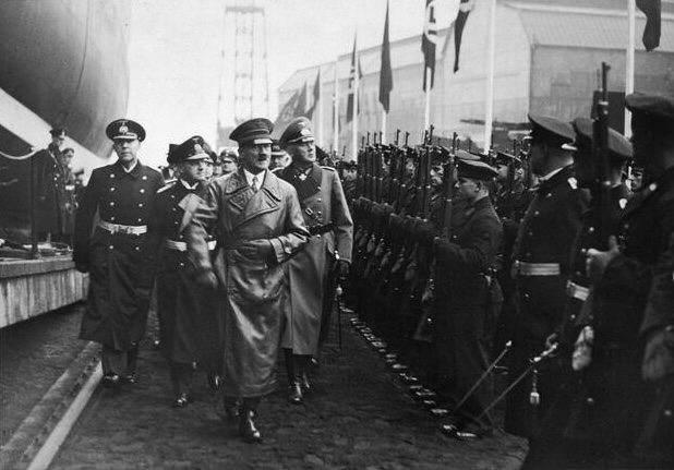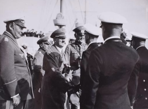 Adolf Hitler at the ‘stapellauf’ of the Schlachtschiff Bismarck on 14 February 1939.Adolf Hitler, Großadmiral Dr. h. c. Erich Raeder, der Oberbefehlshaber der Kriegsmarine, Generalfeldmarschall Hermann Göring und Reichsführer Himmler beim Stapellauf des Schlachtschiffes BismarckFrom left to right: Reich Foreign Minister Joachim von Ribbentrop, SS-Reichsfuehrer Heinrich Himmler, Adolf Hitler, Generalfeldmarschall Hermann Goering, Reich Minister Rudolf Hess and the envoy Prince Bismarck at the launch of the “Bismarck” on February 14, 1939. With a weight of 41,700 tons and a length of 250.5 m, the Bismarck was the largest battleship of the German Kriegsmarine.Adolf Hitler at the launching of the battleship Tirpitz in Wilhelmshaven on 1 April 1939Adolf Hitler at the launching of the battleship Tirpitz in Wilhelmshaven on 1 April 1939Adolf Hitler in Wilhelmshaven for the launch of the Tirpitz on 1 April 1939.Admiral Raeder talks to the Führer during military exercises on 15 June 1938.Hitler visiting the cruiseline ‘Scharnhorst’ owned by the Norddeutscher Lloyd; Hitler is delivering a speech while the crew is listening – 1935 – Photographer: Presse-Illustrationen Heinrich Hoffmann – Published by: ‘Die Gruene Post’ 20/1935Adolf Hitler aboard the new German express liner “Scharnhorst” during a meeting with Dr, Goebbels, Herr Hess and Captain Von Frideburg, the commander of the ship.Besichtigung d.Dampfers Scharnhorst 4. Mai 1935On the christening platform, as the battleship Scharnhorst is launched at Wilhelmshaven, Germany, 3 October 1936. Among those also on the platform, just to the right of Hitler, are General Werner von Blomberg and Admiral Erich Raeder. Photograph from the New York Times Paris Bureau collection in the U.S. National Archives.Adolf Hitler and Hermann Goering arriving for the launch of Germany’s first aircraft carrier Graf Zeppelin in Kiel on 8 December 1938.Adolf Hitler and Hermann Goering attend the launch of Germany’s first aircraft carrier Graf Zeppelin in Kiel on 8 December 1938.