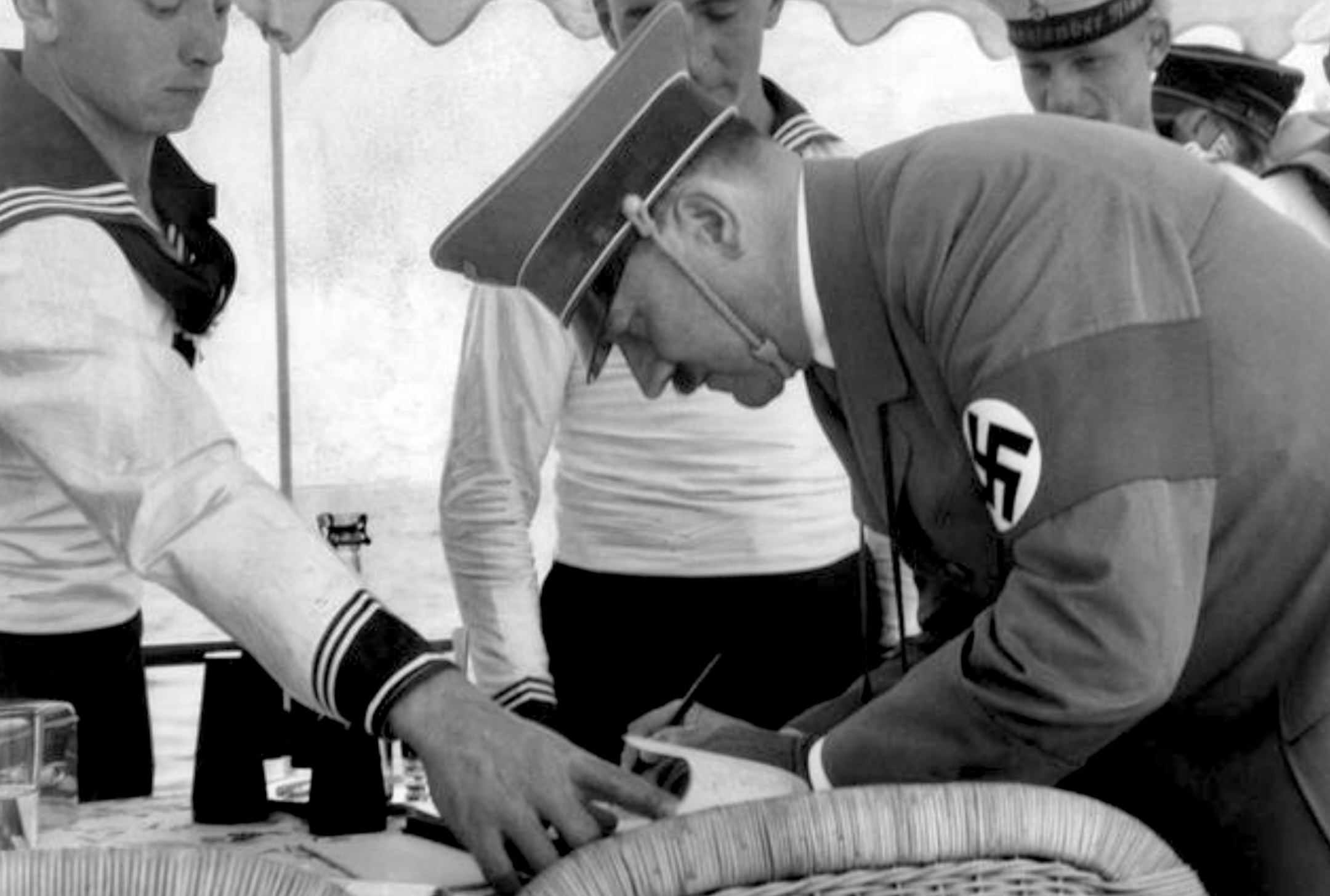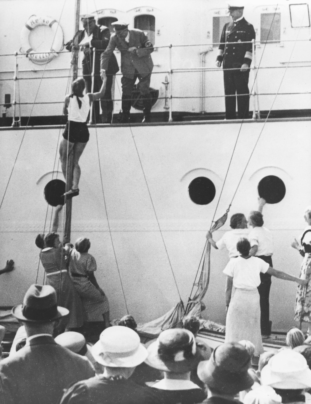 Adolf Hitler watches the Olympic sailing race on board of the Nixe yacht with admiral Friedrich Götting on 9 August 1936.Adolf Hitler signs autographs for young sailors on board of the supply vessel ‘Nixe’ on 9 August 1936.Adolf Hitler watches the Olympic sailing race on board of the Nixe yacht with admiral Friedrich Götting on 9 August 1936.Adolf Hitler with the Commander of the navy and Chairman of the Reichs Sports, Hans von Tschammer und Osten, at the sailing regattas on the Kiel Canal on 9 August 1936.Chancellor Adolf Hitler salutes a passing ship at the sailing regattas of the XIth Olympiad on the Kiel Canal on 9 August 1936.