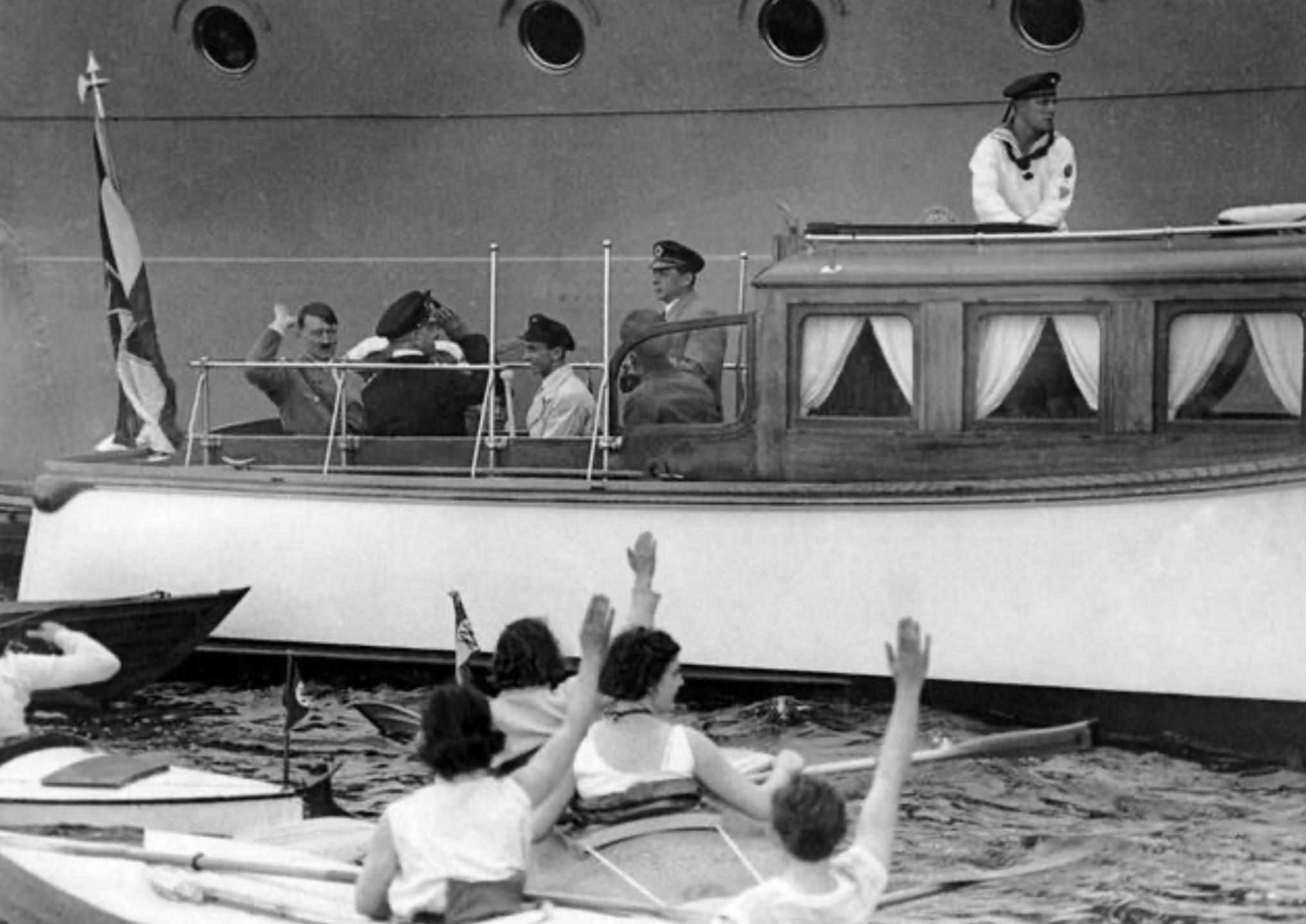 Adolf Hitler thoroughly enjoying a ride on a water taxi in 1932. This might also be Lake Niegocin.Adolf Hitler inspecting a model of the pocket battleship “Deutschland” on 1 April 1935 on his first official visit to the German Museum in Munich, with members of the museum board (including Hugo Bruckmann to the left of Hitler) on a guided tour through the exhibition departments. Hitler was interested in this visit especially for the congress hall, the airships, road engineering, automobile and finally the shipbuilding division. There he was captivated especially by the model of the battleship Deutschland, which had been donated to the museum in August 1934 by the Admiralty and represented a prime specimen of the new German weapon technology.Adolf Hitler visit to the Kiel plant of the Deutsche Werke Kiel Aktiengesellschaf on 29 May 1936.Führer und Reichskanzler Adolf Hitler, Großadmiral Erich Raeder, Besuch bei der Kriegsmarine. Adolf Hitler and von Blomberg approaching and getting ready to mount the Admiral Graf Spee.Adolf Hitler visiting floating units of the Kriegsmarine with Admiral Erich Raeder in Kiel, here headed to an inspection of the armored ship “Admiral Graf Spee” on 29 May 1936.Adolf Hitler walking past a lined-up guard of honor of the crew of the battleship ‘Admiral Graf Spee’ on 29 May 1936.Fotograf: Heinrich Hoffmann Tegernsee; Gruppenbild (Hitler in Anzug m.Hut lächelnd; am Steuerrad; auf d.Boot Adolf Müllers während e.Urlaubs); Müller, Lotte; Hitler,Adolf Hitler enjoys a cruise on the Tegernsee on Adolf Müller’s boat during a vacation. After Geli’s death, Adolf Hitler had travelled to Sankt Quirin am Tegernsee to the country house of the Munich-based printer Adolf Müller, the publisher of Mein Kampf and a close confidante of Hitler from the earliest days of the Nazi party. Several other high-ranking Nazis also had homes around the lake, including Heinrich Himmler, Max Amman and Franz Xaver Schwartz (seated far left).Screenshot I took from Putschgirl’s website back in 2022, I really miss her posts – they were always much more insightful and personable than mine, but I try my very best. Especially since there aren’t many people blogging about Hitler anymore and there is still a little bit of interest remaining amongst this very niche community.