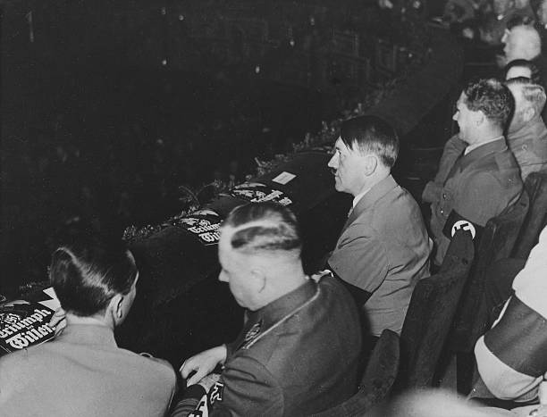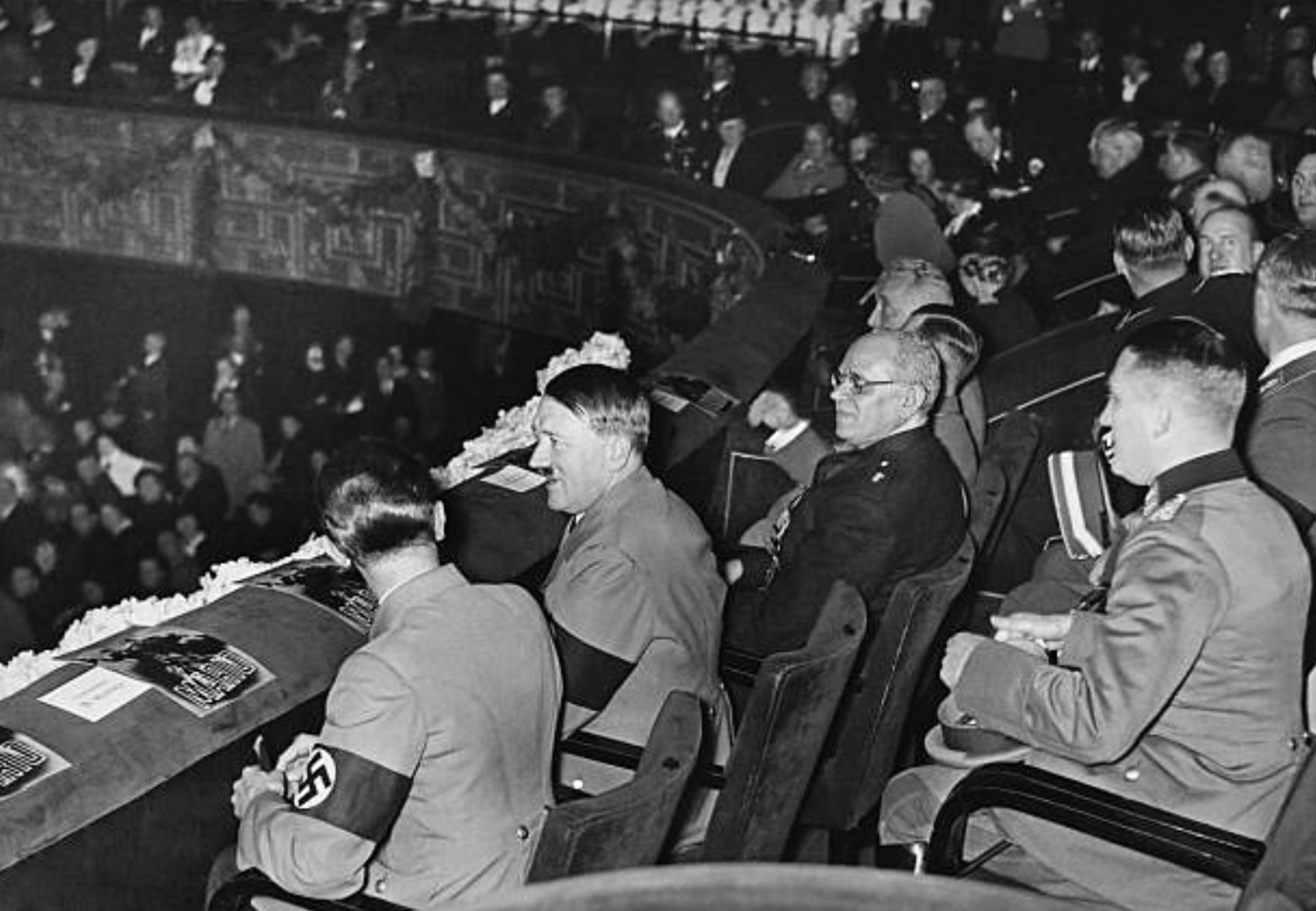 Adolf Hitler attending the premier of âShock Troop 1917â in Berlin on 20 February 1934.