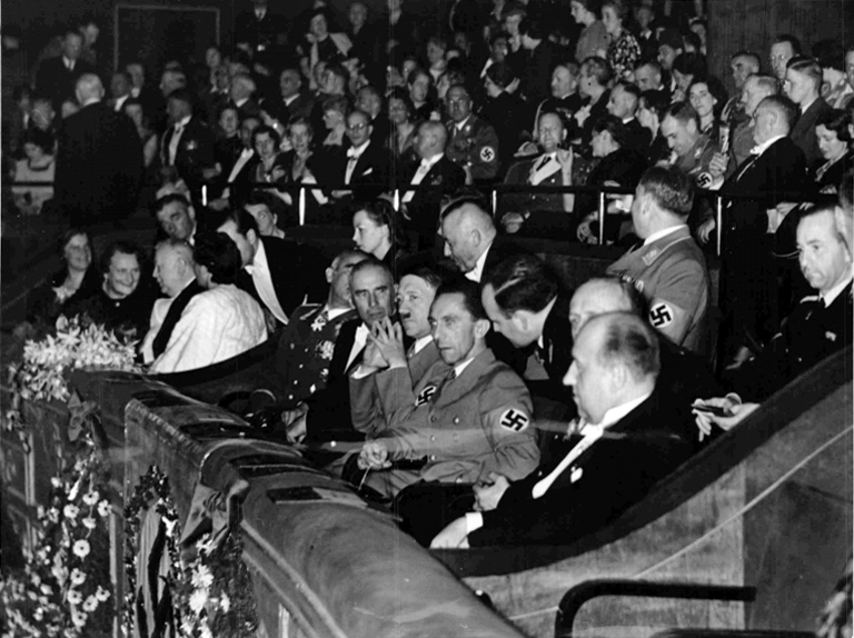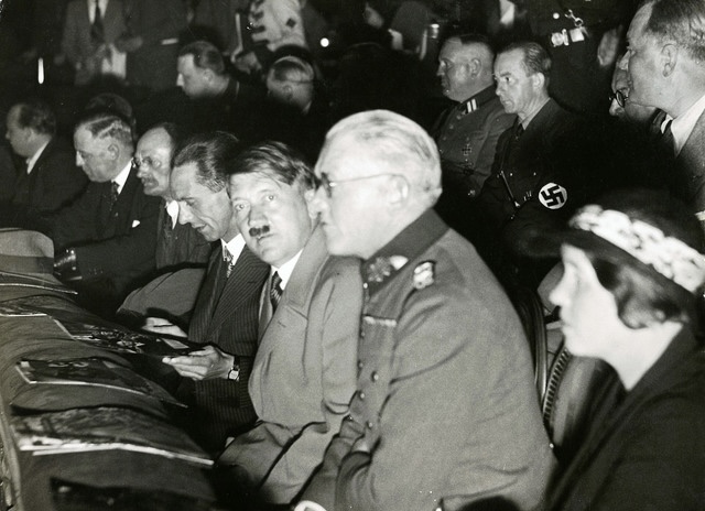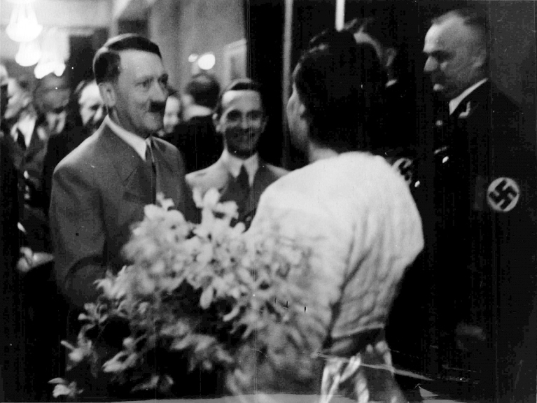 Adolf Hitler at the premiere of the Nuremberg Armed Forces movie â’Tag der Freiheit: Unsere Wehrmachtâ (Day of Freedom: Our Armed Forces) at the UFA Palast am Zoo in Berlin on 30 December 1935 with Lieutenant Colonel Bodenschatz.,Adolf Hitler and. Leni Riefenstahl at the premiere of the film âTag der Freiheit unsere Wehrmachtâ at the Ufa-Palast am Zoo on 30 December 1935.Adolf Hitler at an artistâs reception held at the Reich Chancellery in 1937. Leni Riefenstahl is third from the right.Adolf Hitler at an artistâs reception held at the Reich Chancellery in 1937 chatting with a group of actors and actresses.Premiere of the Italian Balilla film ‘Mario’ at the UFA Palast am Zoo in Berlin in the presence of Adolf Hitler. Right to left: Joseph Goebbels, the Italian Ambassador Bernardo Attolico Hitler, Robert Ley, SS-Brigadier Schaub, Walther Funk, and Prof. Lehnich, President of the Film Chamber of the Reich on 19 April 1937.Adolf Hitler, Dr Goebbels and Italian Ambassador Attolico, attending the preview of the film âMarioâ in Berlin on 20 April 1937.