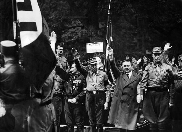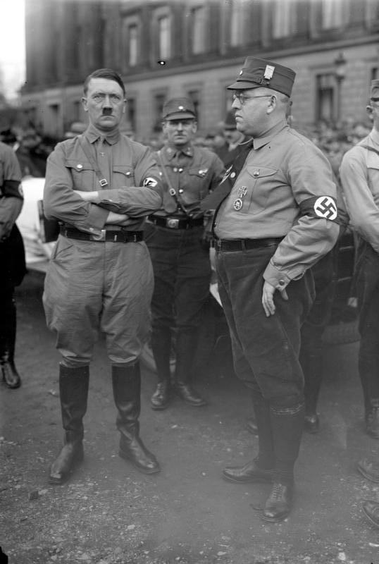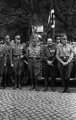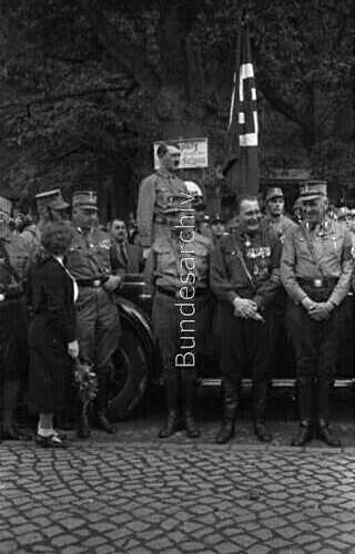 Hitler wasn’t very cooperative towards the leaders of the other participating parties. Wanting power solely to himself, he left the tribune that had been built to watch the parade immediately after the SA had finished marching and didn’t wait for the parades of other participating parties. This poorly assembled photo composite shown below attempts to show Hitler and Hugenberg standing in solidarity at the Harzburg Front parade, but due to Hitler’s early departure his image had to be pulled from a separate event that he had attended in Brunswick.
