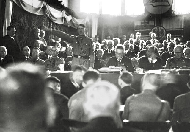 It was 93 years ago today that the political and economic giants of the German nationalist and National Socialist camps of the Weimar Republic met in Bad Harzburg on 11 October 1931. This congressional gathering of radical right-wing conservatives came to be known as the “Harzburg Front” – a very short-lived anti-democratic political alliance in Weimar Germany, formed as an attempt to present a unified opposition to the government of Chancellor Heinrich Brüning. It was a coalition consisting of the national conservative German National People’s Party (DNVP) under millionaire press-baron Alfred Hugenberg, Adolf Hitler’s National Socialist German Workers’ Party (NSDAP), Franz Seldte’s Der Stahlhelm (Steel Helmets) paramilitary veterans’ association, the Agricultural League and the Pan-German League organizations.
