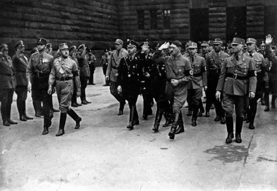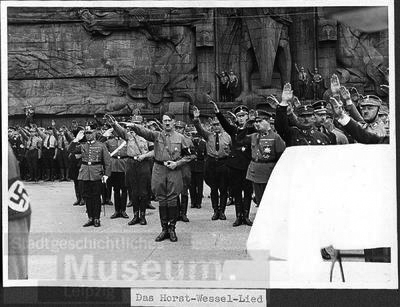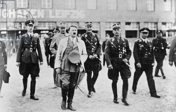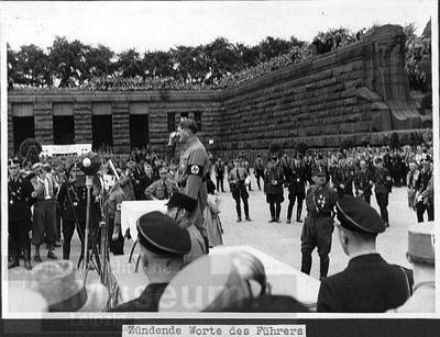 Adolf Hitler gives a speech in front of Leipzig’s Völkerschlachtdenkmal (Monument to the Battle of the Nations)Adolf Hitler in front of Leipzig’s Völkerschlachtdenkmal (Monument to the Battle of the Nations) during the Horst Wessel Lied (anthem of the NSDAP)Adolf Hitler gives a speech in front of Leipzig’s Völkerschlachtdenkmal (Monument to the Battle of the Nations)Adolf Hitler at the Sachsentreffen Gauparteitag Leipzig (regional party congress for Saxony) held in Leipzig on 16 July 1933. Ernst Roehm stands with Hitler in front of saluting soldiers at Leipzig’s Völkerschlachtdenkmal (Monument to the Battle of the Nations) during the Horst Wessel Lied (anthem of the NSDAP). Hitler delivered a speech this day to 140,000 men of the SA and the Stahlhelm.