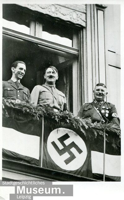 Adolf Hitler arrives at the Sachsentreffen Gauparteitag (regional party congress for Saxony) held in Leipzig on 16 July 1933.Adolf Hitler greets the Leipzig population from the balcony of the Hotel Hauffe during his stay in the city on the occasion of the Gauparteitag, the so-called Saxony meeting; next to Hitler (from left) Joseph Goebbels, SA chief of staff Ernst Röhm and the Reichsstatthalter in Saxony, Martin, Mutschmann.Adolf Hitler with Joseph Goebbels and Ernst Röhm on the balcony of the Hotel Hauffe during the Gauparteitag of Saxony.Adolf Hitler with Joseph Goebbels and Ernst Röhm on the balcony of the Hotel Hauffe during the Gauparteitag of Saxony.Adolf Hitler arrives at the Sachsentreffen Gauparteitag Leipzig rally at Leipzig’s Monument for the Battle of the Nations on 16 July 1933.Adolf Hitler arrives at the Sachsentreffen Gauparteitag Leipzig rally at Leipzig’s Monument for the Battle of the Nations on 16 July 1933.View of the Monument to the Battle of the Nations in Leipzig on the Gau Day of the Saxon NSDAP during the speech of Adolf Hitler. In the foreground there are SA members.
