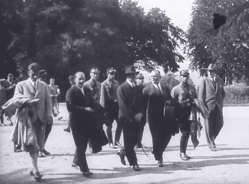Adolf Hitler arriving in Tiefurt / Weimar for a rally; right: Fritz Sauckel, head of the Nazi district of Weimar; left: Rudolf Hess; at the back: Hitler’s personal adjutants Wilhelm Brueckner and Julius Schaub