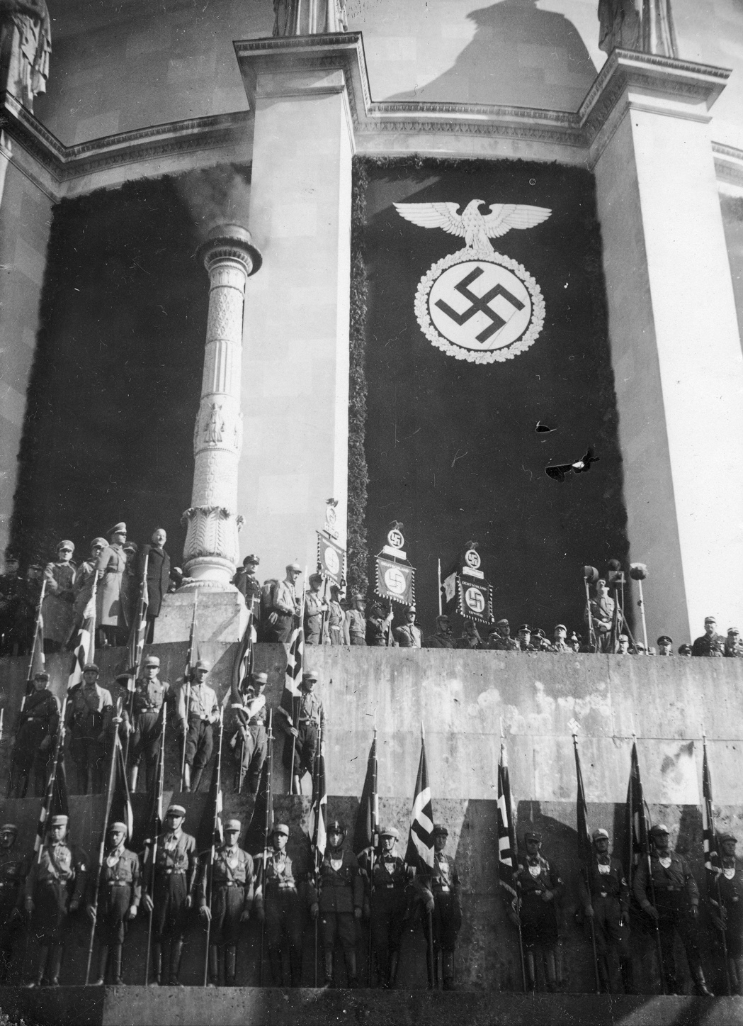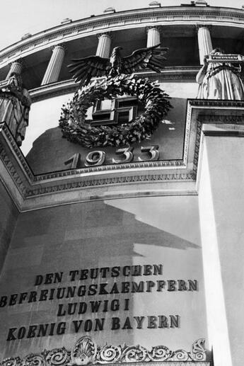 During the first year of Nazi rule the Befreiungshalle (Hall of Liberation), a monument commemorating the victories against Napoleon, was decorated with National Socialist symbols.