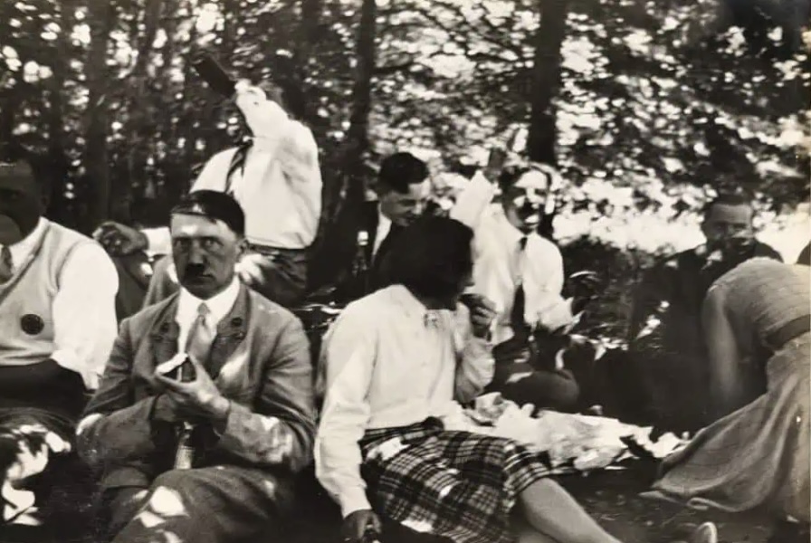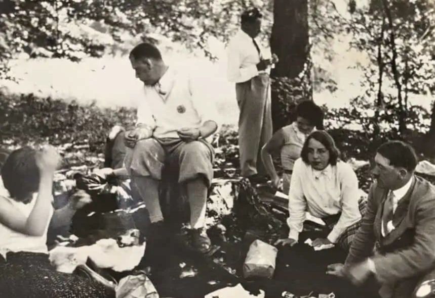 These photos are possibly documentation of Hitler’s trip from the 24-25th July 1930 to Nuremberg. From Munich, Hitler took a car trip to Nuremberg to give a speech in the Colosseum in front of 2000 listeners, and stayed overnight with his entourage in the Hotel Deutscher Hof. The next day was the car ride back to Munich, where he would often stop to enjoy a picnic lunch. This could also be his annual journey to the Bayreuth Festival, which also always occurred in late July each summer. Either way these were typical scenes from Hitler’s road trips. What is special here are the ones showing Geli out shopping and enjoying her very own day out with friends in the center of Nuremberg.