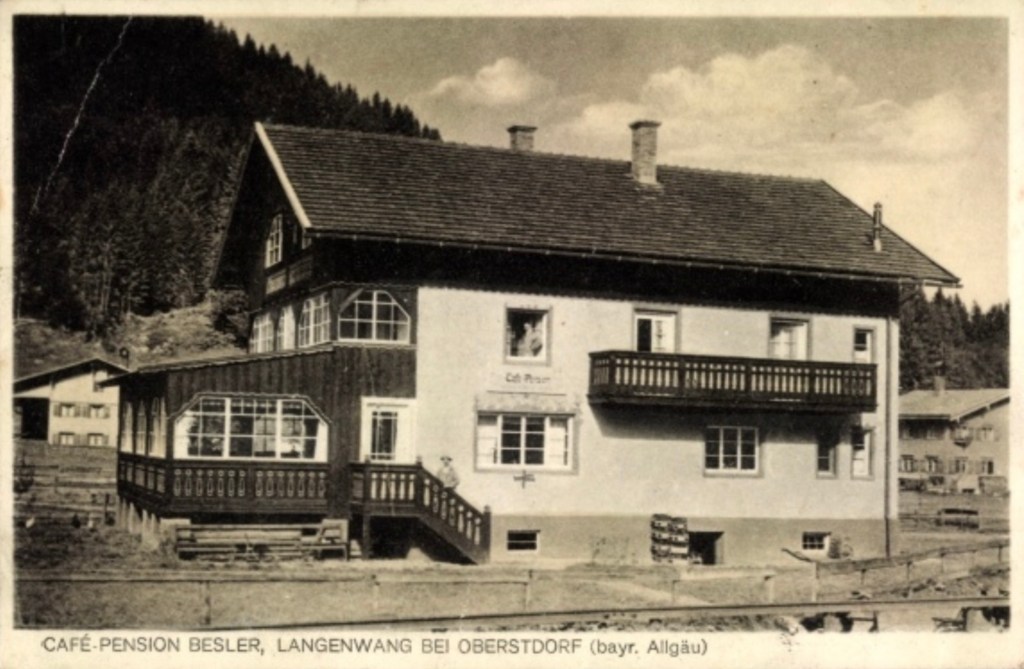 Postcards showing this exact mountain range of the Allgäuer Alpen as seen from the Kaffee und Pension Besler: