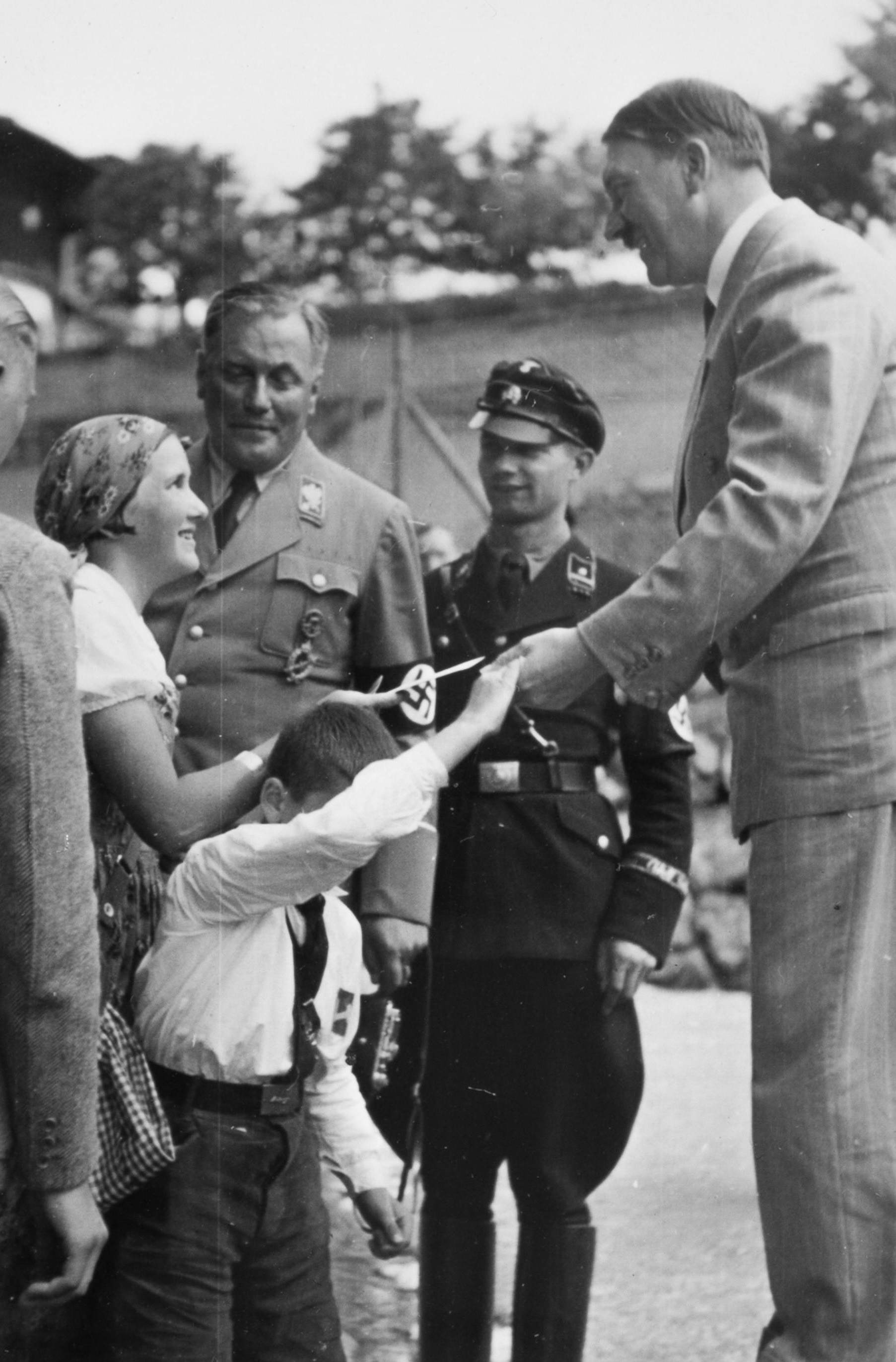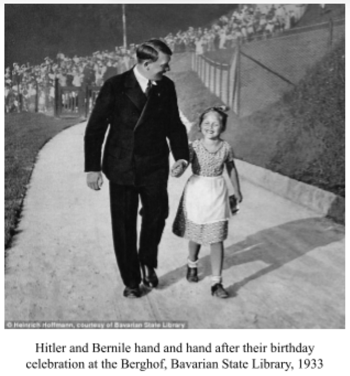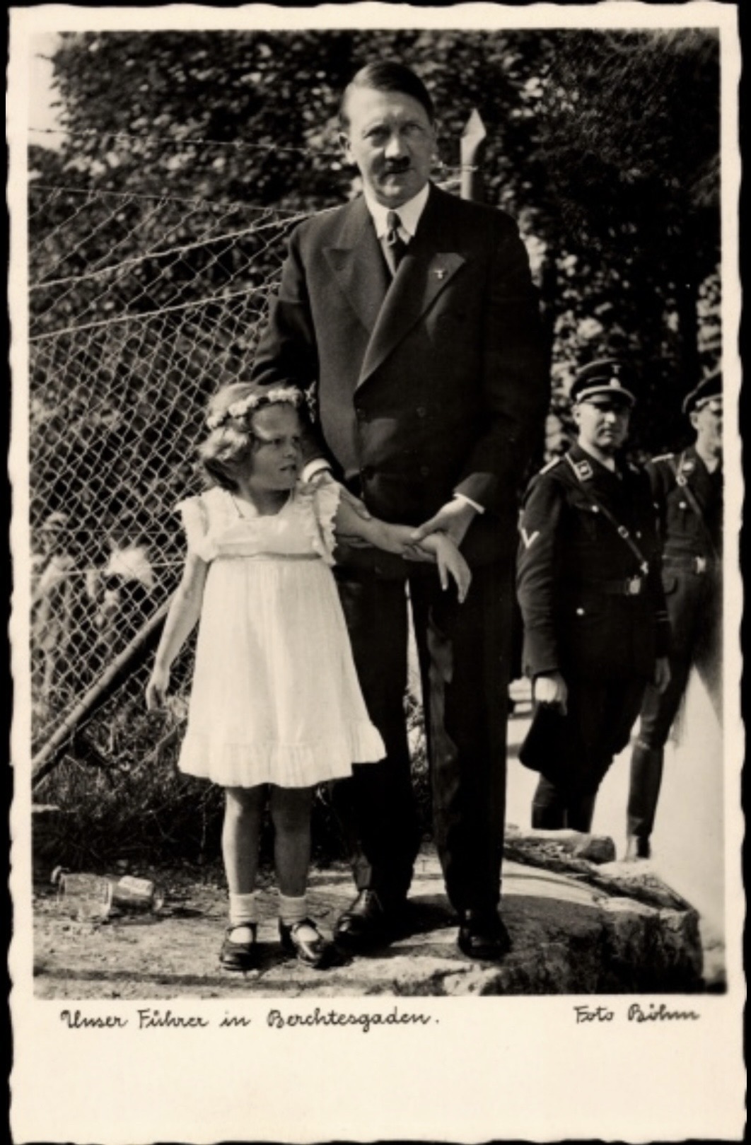 When a later investigation by Hitler’s staff revealed that Bernile’s maternal grandmother was Jewish, Martin Bormann forbid her and her family to ever visit Hitler again. The fact that Bernile’s grandmother and mother were Jewish was already known to Hitler in 1933. These photographs were published even after Hitler became aware of her ancestry. Hitler learned about Bormann’s ban in May 1938 when Heinrich Hoffmann complained to him that Bormann had also forbidden him to continue publishing any photos showing the Führer with a Jewish child. In his book “Hitler Was My Friend”, Hoffmann writes that Hitler remarked about Bormann: “There are people who have a true talent to spoil my every joy.”