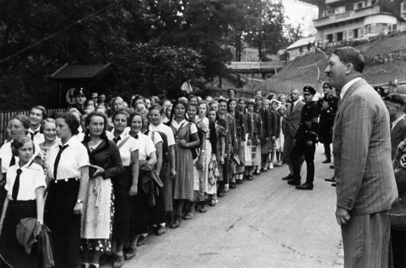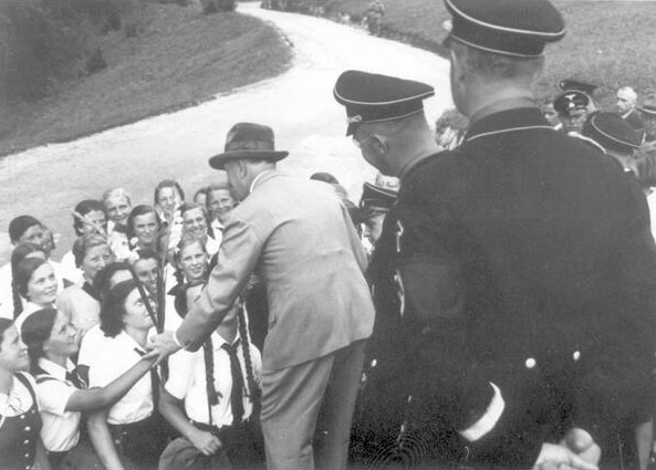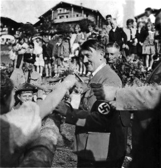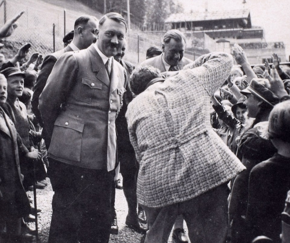 Traudl Junge, Hitler’s longtime private secretary, recalled how before the war, the gates to Hitler’s mountain-retreat were opened once a day when he began his daily walk, and then people streamed into the grounds and lined his way. She recalled a particularly intriguing scene at the Berghof, where “Hysterical women gathered up the stones which his feet had touched, and even apparently reasonable people behaved in a most irrational manner. On one occasion a lorry bringing tiles to the Berghof was plundered by a few very overexcited women, and the tiles – which the Führer’s hands and feet had certainly never touched – ended up as souvenirs in the display cabinets of their living rooms. Love letters from such women made up a considerable part of the post which arrived in the Führer’s chancellery.”