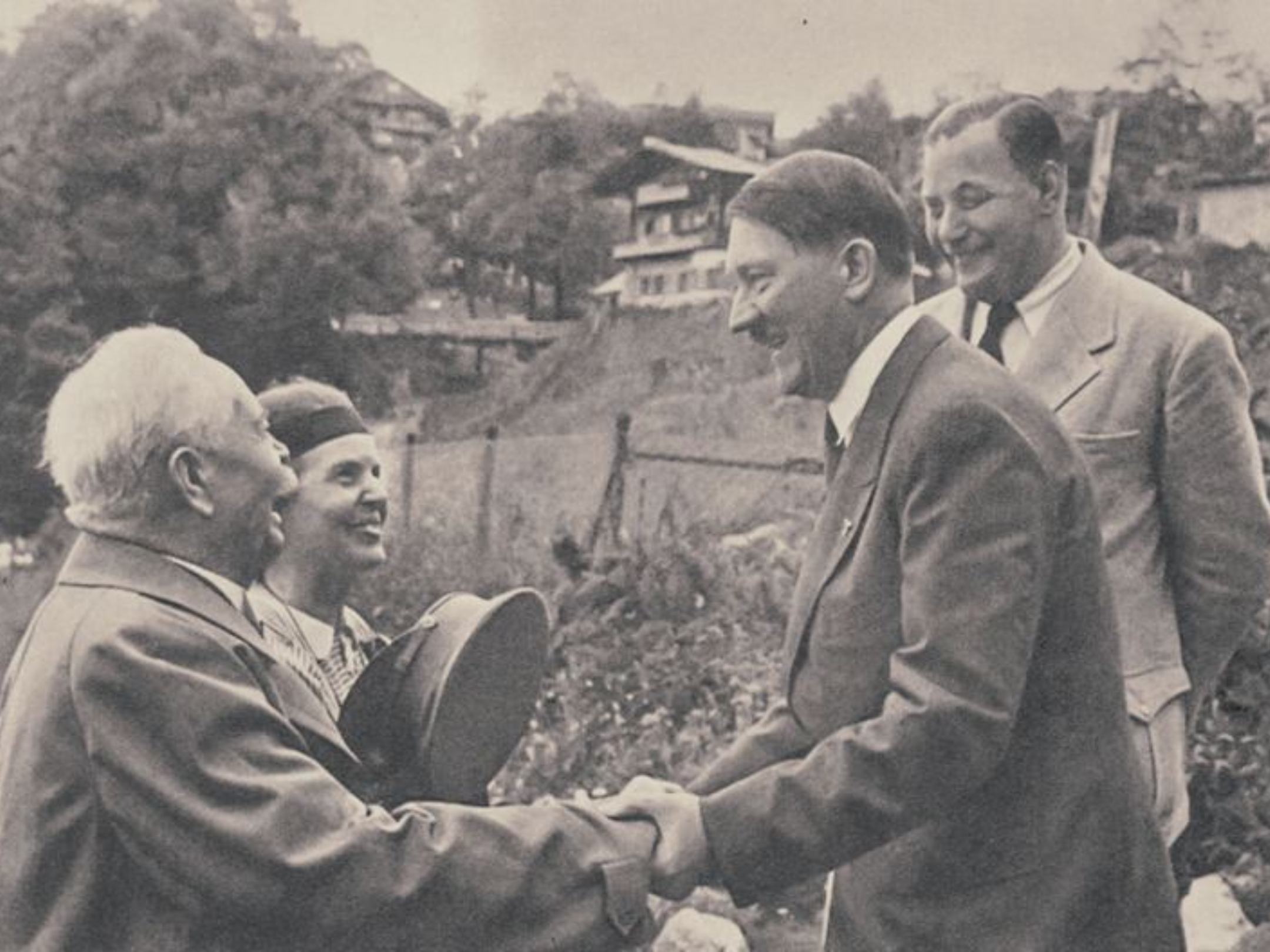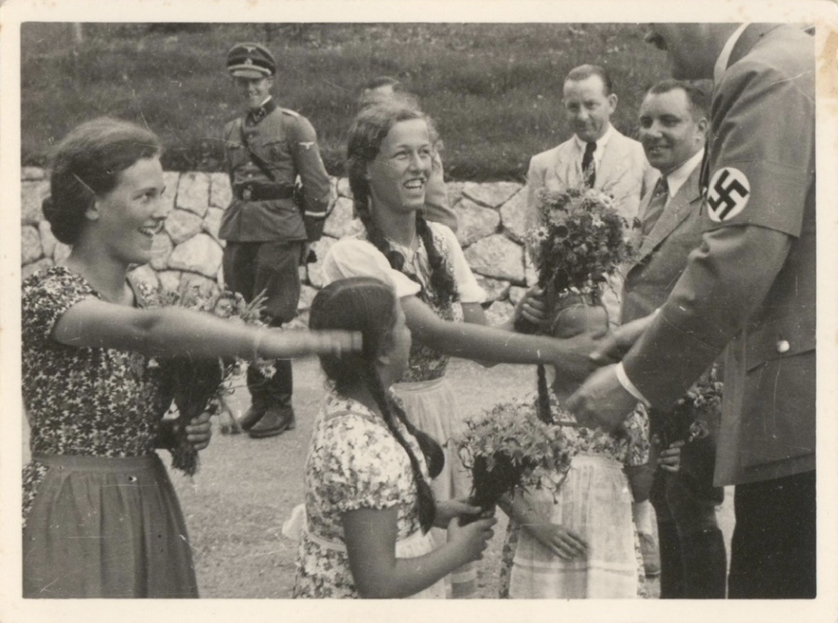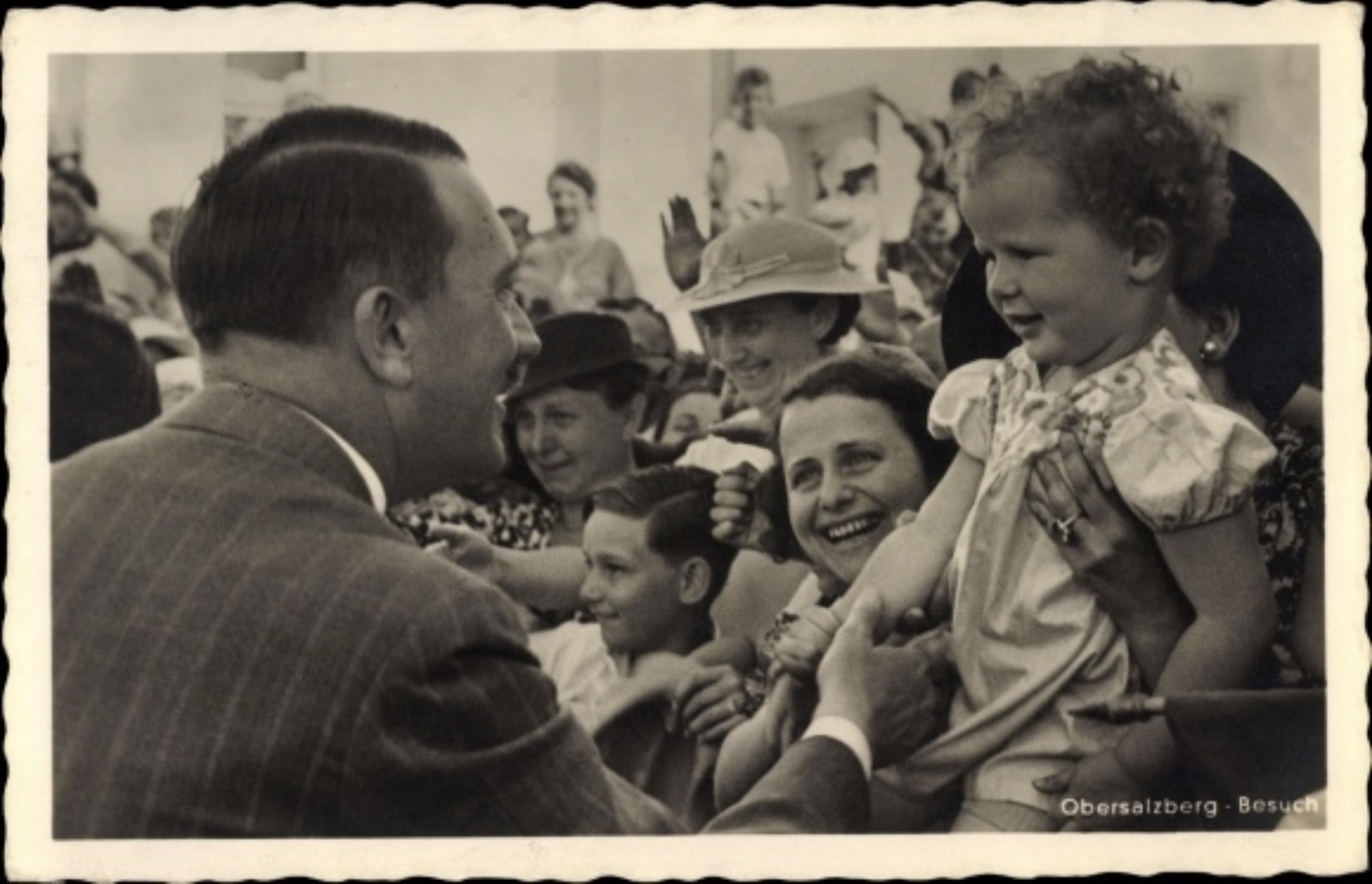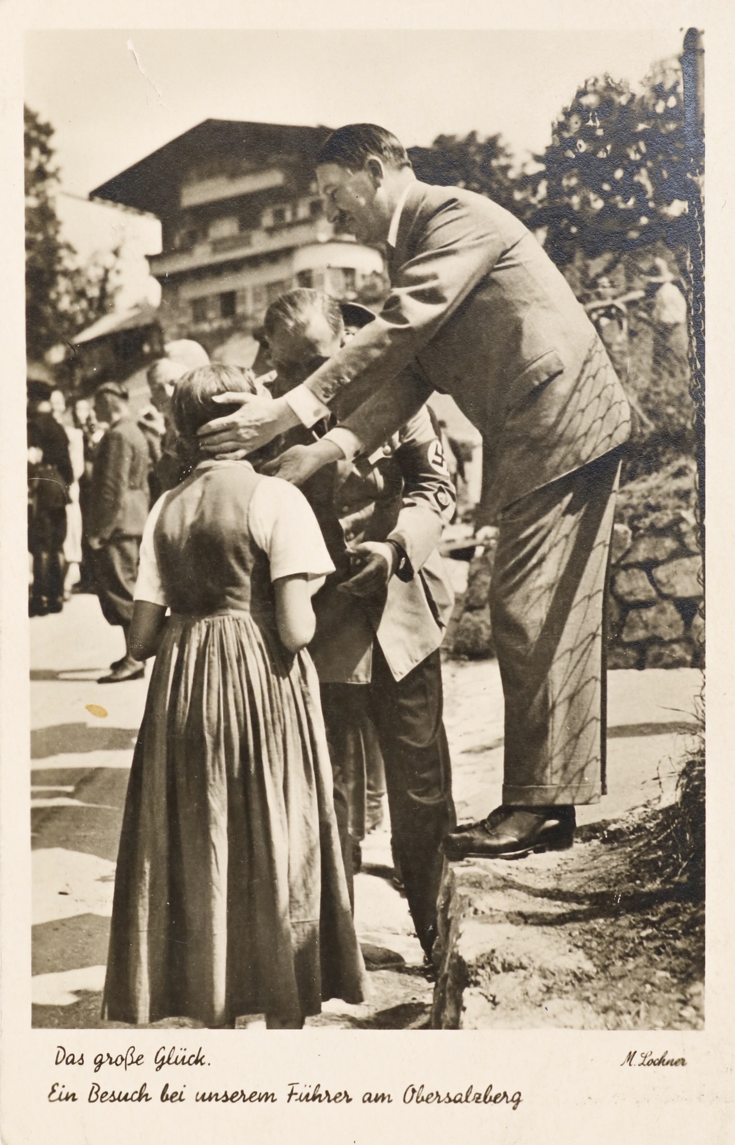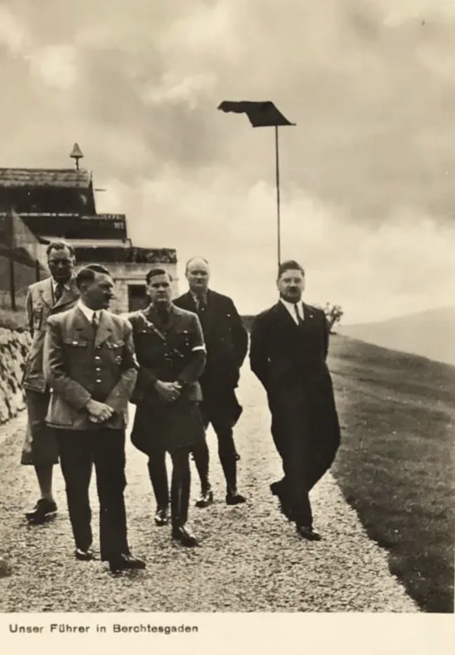 Hitler’s Obersalzberg mountain home hosted high-ranking Nazi officials, European leaders, and diplomats. Key guests included Neville Chamberlain, Benito Mussolini, and the Duke and Duchess of Windsor. It was a mix of private retreat, entertaining space for close associates, and a high-stakes diplomatic venue. These photos show public visitors who came to the Berghof, ordinary citizens hoping to get an autograph or photo taken with Hitler. Heinrich Hoffmann took hundreds of photos at these occasions to publish in his books and to produce as postcards.