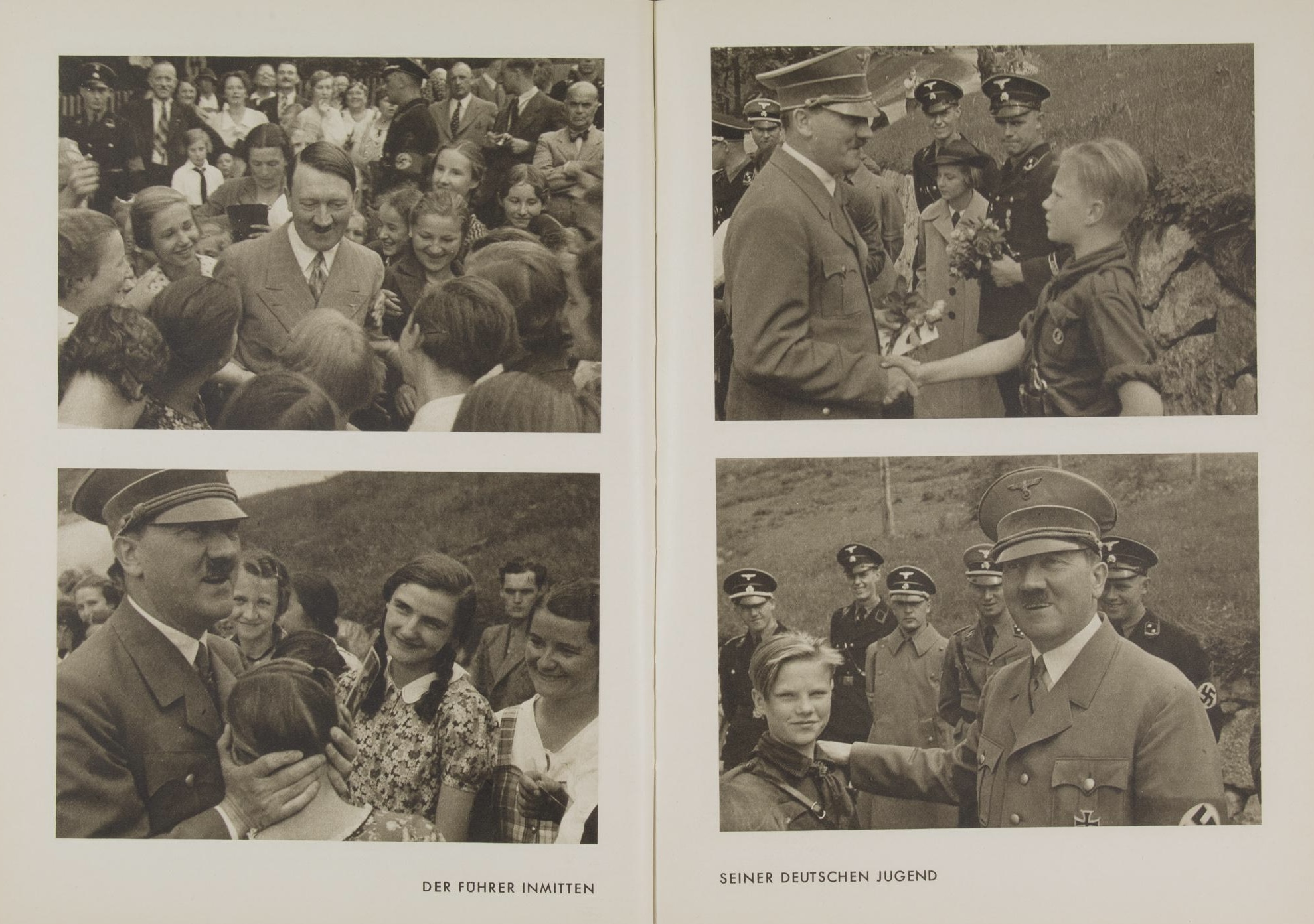 The following is a series of four photographs from Eva Braun’s private albums titled “Vorbeimarsch” (march past) showing Hitler greeting visitors arriving out in front of his private residence the Berghof. Thousands of people would make the pilgrimage each day to Berchtesgaden hoping just to catch a glimpse of the Führer, or to be lucky enough to even get an autograph and photo taken with him…