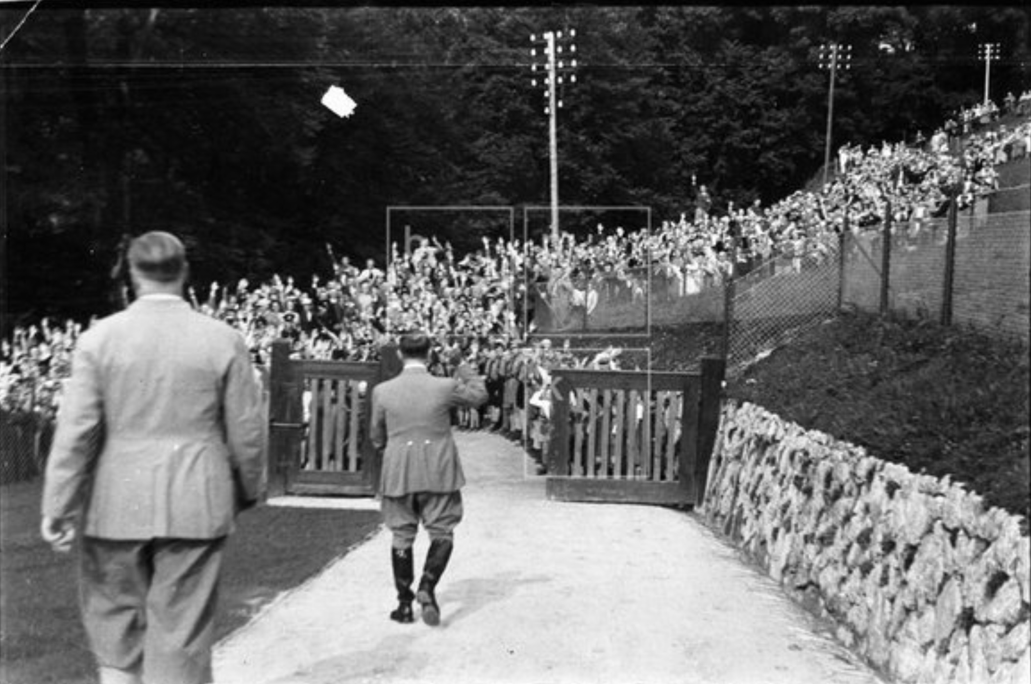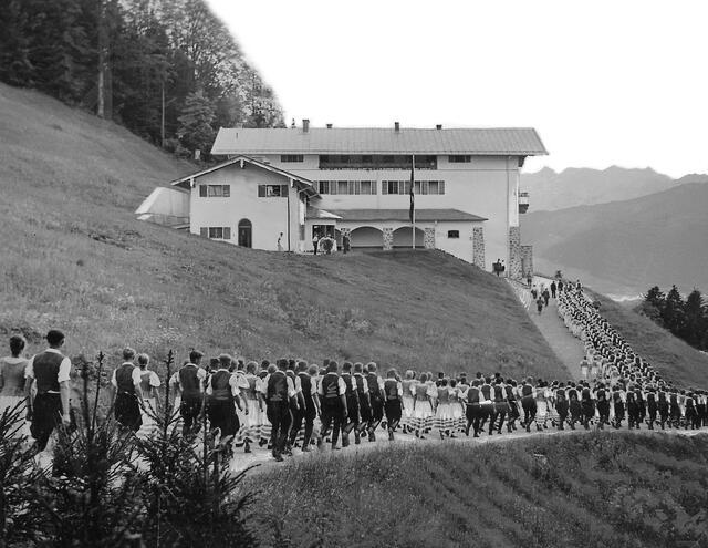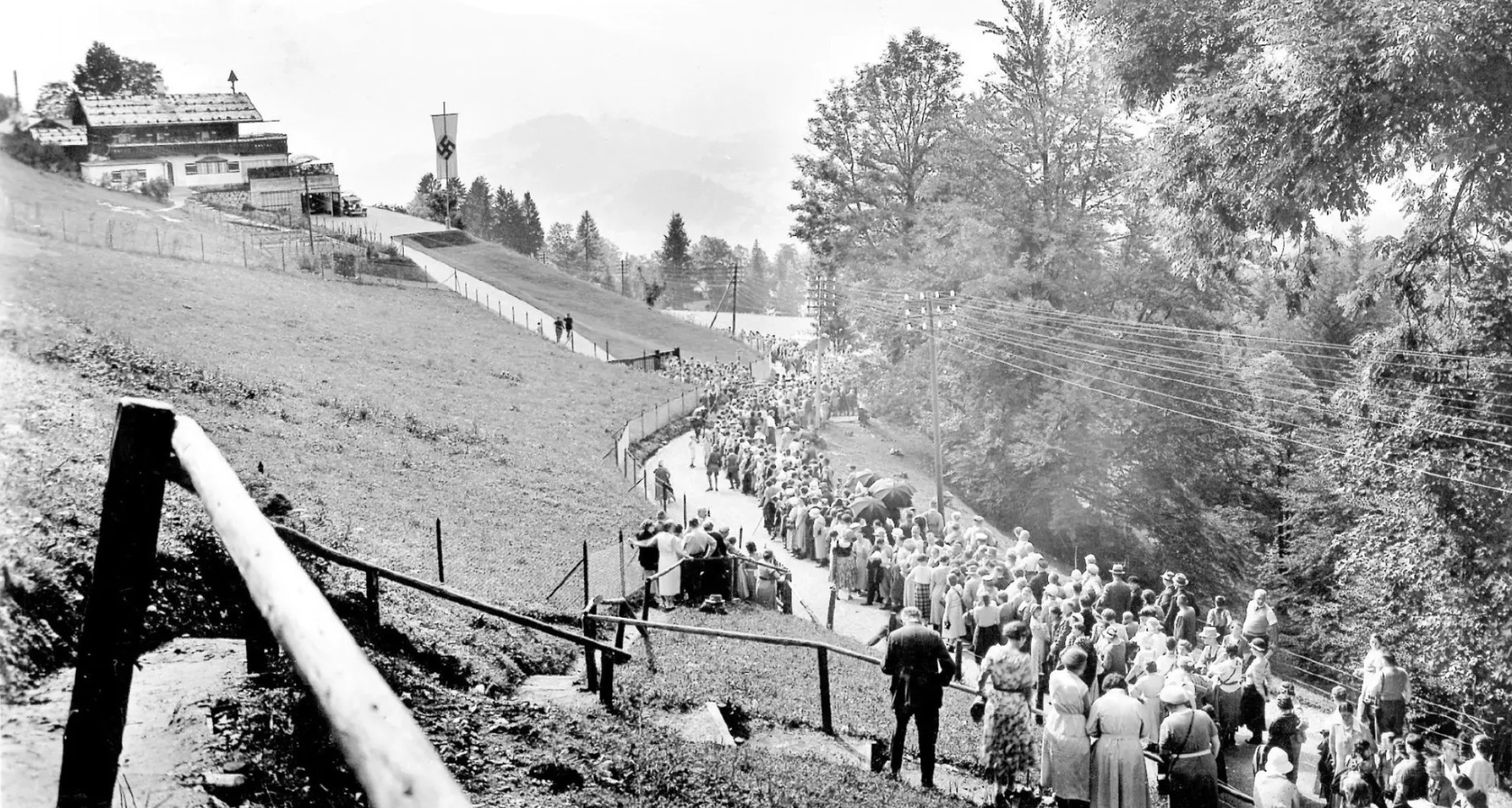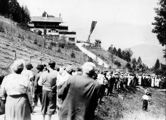 After coming to power in January 1933, Nazi propaganda increasingly portrayed Hitler as a “man of the people” living in a modest and idyllic alpine setting. From 1933 until 1936, thousands of Germans traveled to Berchtesgaden to catch a glimpse of their Führer. People would gather at the end of his driveway in what became known as “pilgrimage-like events”. In late 1936 the area was closed off to the public due to the massive influx of visitors and mounting security concerns. The area was declared a “Führersperrgebiet” or “Führer’s restricted area” and had strictly controlled access through SS-patrolled checkpoints. Organized groups like the Hitler Youth were still permitted access to the estate but not the general public.