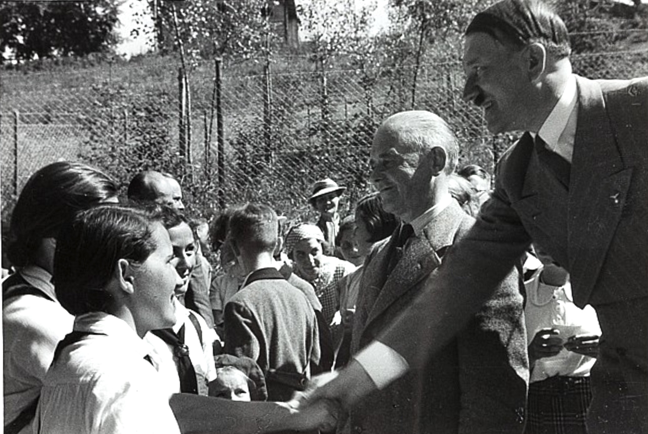 Hitler’s home became an extremely popular tourist attraction. Crowds of admirers used to wait at the end of the driveway for a chance to greet the Führer. Heinrich Hoffmann took lots of photos of these scenes. Hitler especially loved to greet children, who came to visit him in the thousands. Various youth groups also would visit the Berghof and meet the Führer. According to those who knew him, Hitler was genuinely fond of children and enjoyed having them visit him at his mountain home.