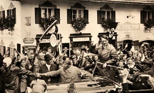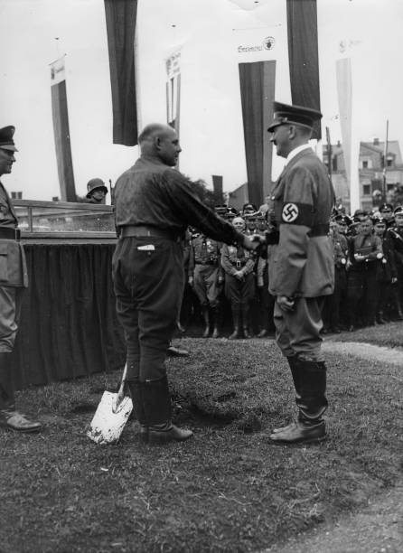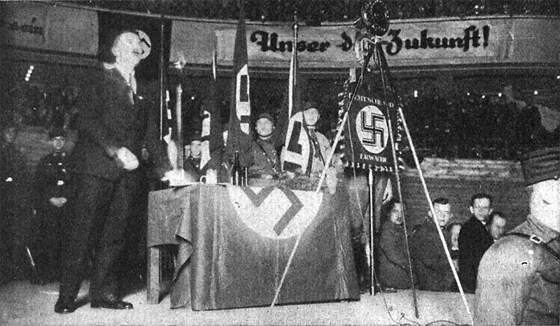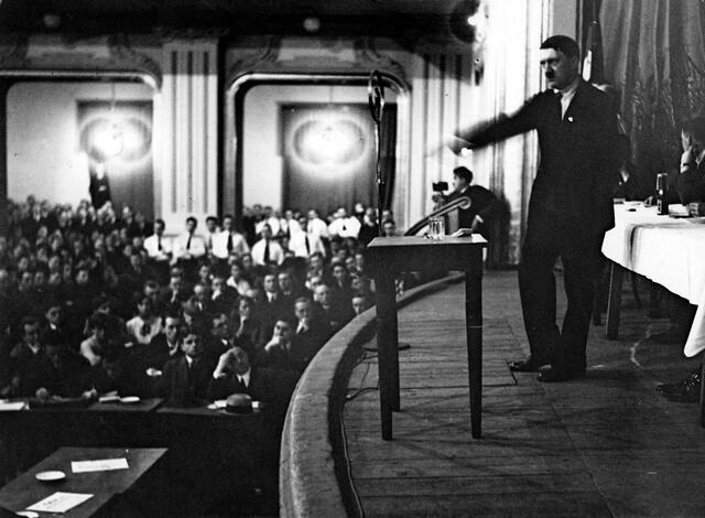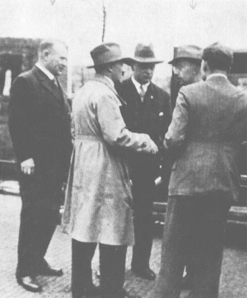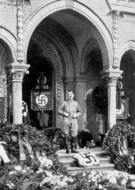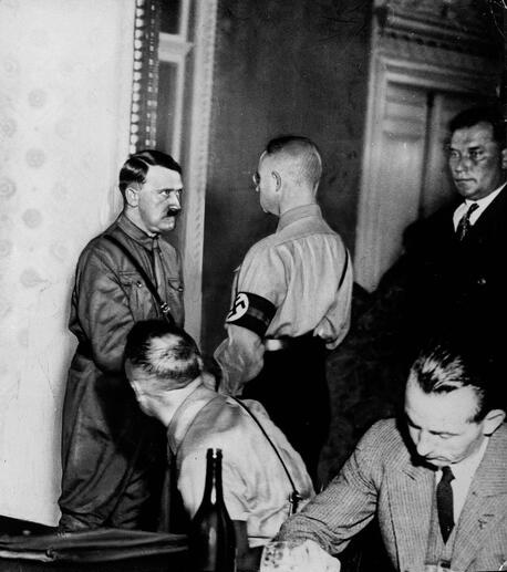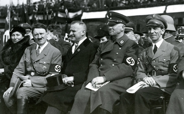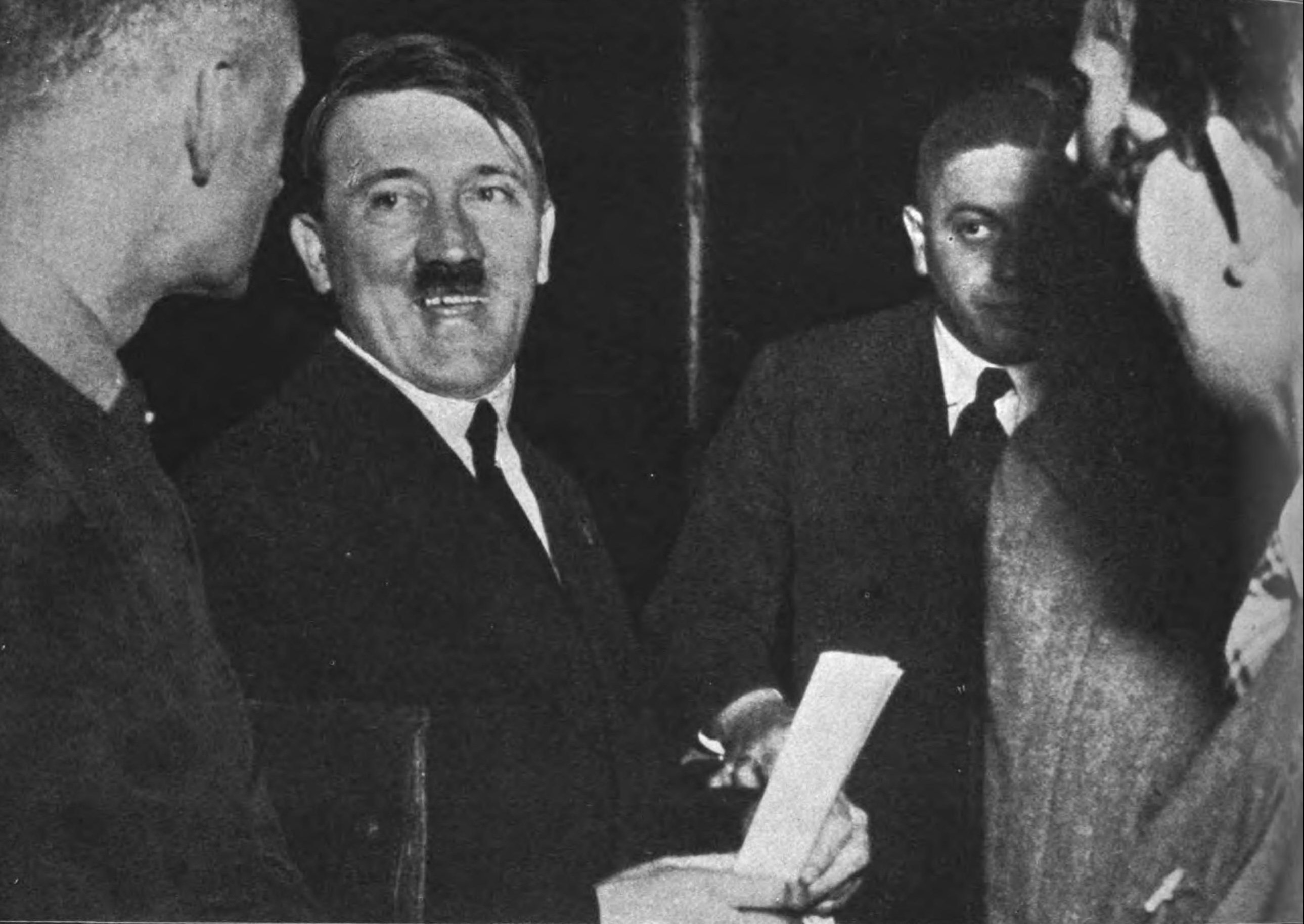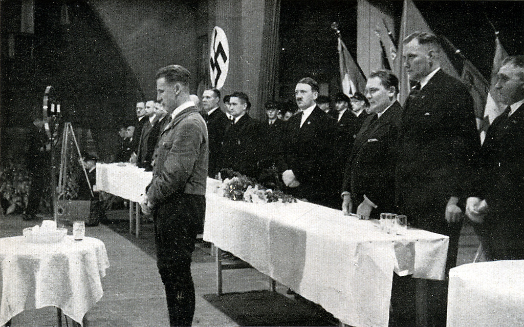 Adolf Hitler during a visit to Hattingen in 1926, in the early days of the Nazi movement in the Ruhr area, where Hitler first met Joseph Goebbels and the later SA chief Viktor Lutze.