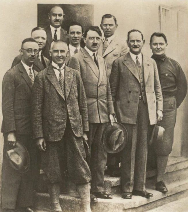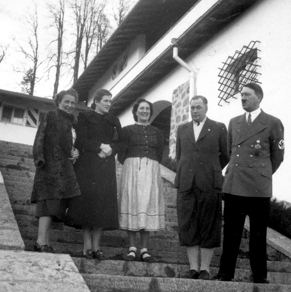 This is a photograph of senior Nazi party figures taken in the dining room of Helene Bechsteinâs Berchtesgaden Villa in 1929. Standing, left to right: Rudolf Hess, Martin Mutschmann, Heinrich Himmler. Seated, left to right: Joseph Goebbels, (woman unknown), Adolf Hitler. The Bechsteins both publicly funded Hitler and gave him the funds to continue publishing the VĂślkischer Beobachter.