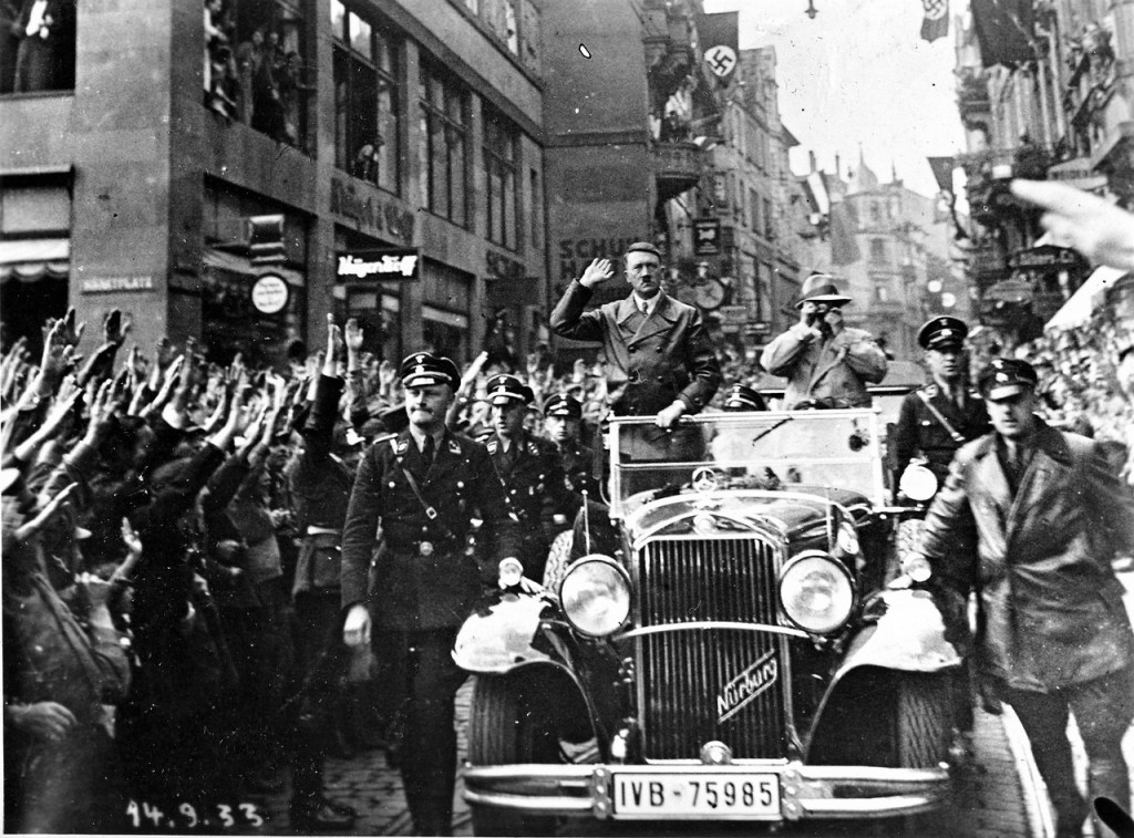 Adolf Hitler chats with early Nazi confidants Adolf Wagner, Franz Xaver Schwarz and Philipp Bouhler during the election campaign of the NSDAP for the local Munich elections in November 1929. The driver of Hitlerâs Mercedes is Michael Steinbinder, who was a German paramilitary activist and SS FĂźhrer who later obtained the rank of an SS-ObersturmfĂźhrer. He became known as the chauffeur of Adolf Hitler and the Reich treasurer Franz Xaver Schwarz.