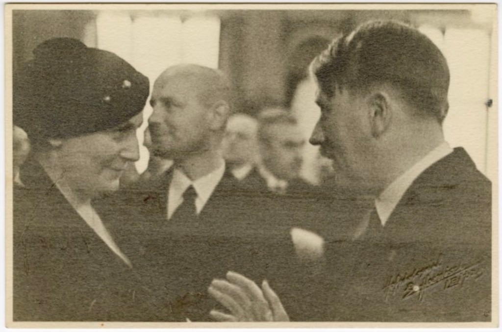 Adolf Hitler with Winifred Wagner at the reception for the laying of the foundation stone at the Richard Wagner national monument in Leipzig on 6 March 1934.