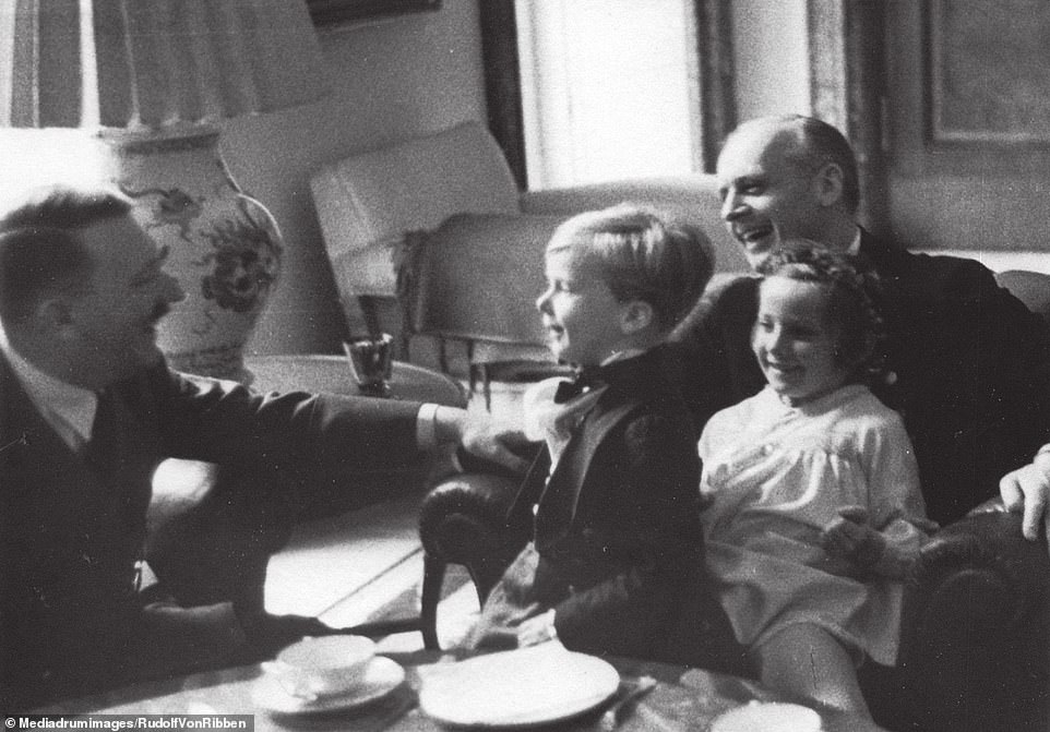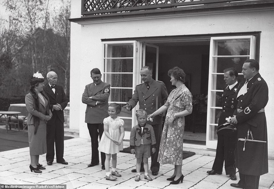 Joseph Goebbels and family visit with Adolf Hitler at the Eagles Nest in 1939.