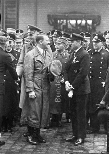 Adolf Hitler talking to Inga Ley on board of the steamer ‘Robert Ley’, to the left sits her husband Robert Ley, photo taken on 1 April 1939 – Photographer: Presse-Illustrationen Heinrich Hoffmann- Published by: ‘Berliner Illustrirte Zeitung’ 15/1939