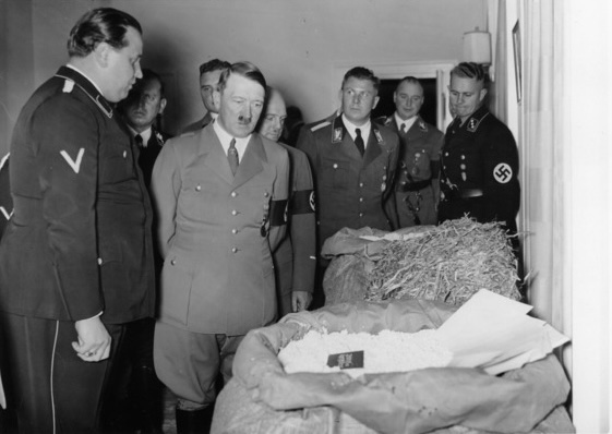 In Weimar, Adolf Hitler visits the fiber exhibition of the Thuringian Zellwolle AG on 7 November 1938. He examines special fibers created from potatoes. Potato fibers are said to have similar properties to cotton and polyester, which make them suitable for various textile application. This is also the same day that 17 year old Jewish man Herschel Grynszpan shot German diplomat Ernst Eduard vom Rath in Paris in protest against the anti-Jewish policy of the Germans and in revenge for the fate of his family. The Nazis used this assassination as a pretext to launch Kristallnacht, “The Night of Broken Glass”, the pogrom of 9â10 November 1938.