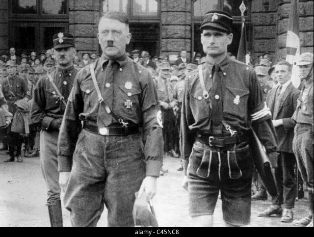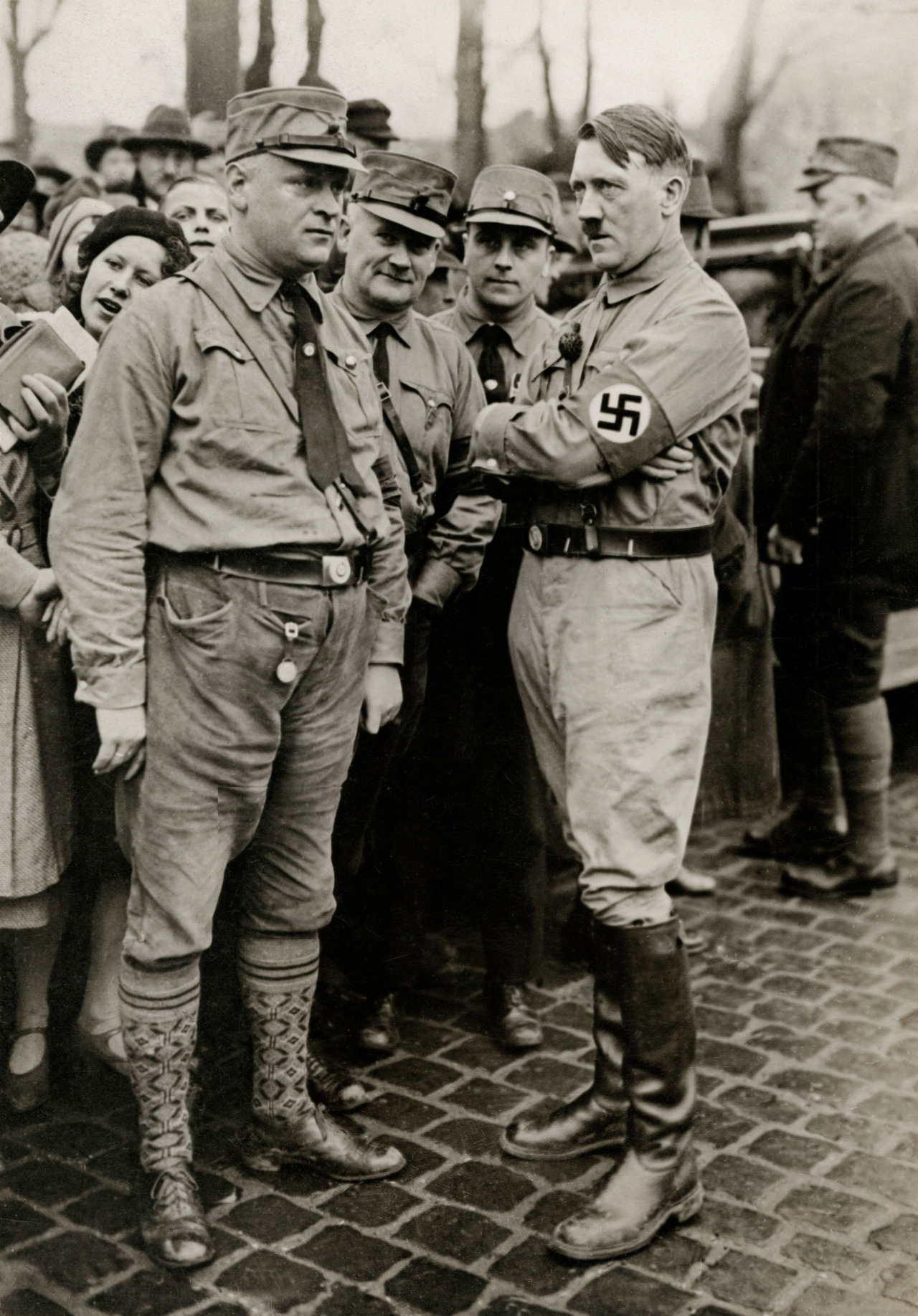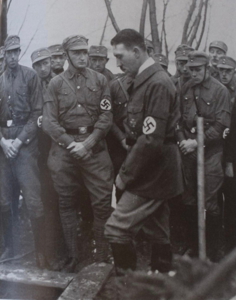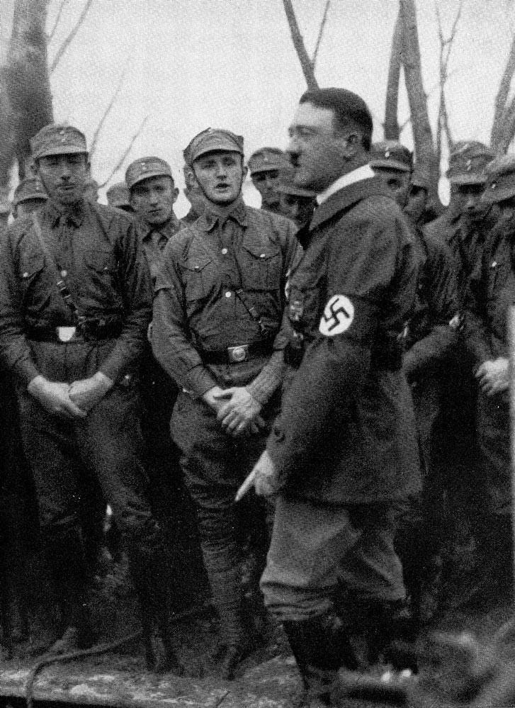 In 1924, while the NSDAP was legally banned following the Beer Hall Putsch, Frontbann (underground SA) leader Gerhard Rossbach located a large store of war-surplus brown denim shirts in Austria, originally intended for tropical uniforms.[3] When the SA (which included the nascent SS) was re-founded in 1925 following Hitler’s release from prison, these brown shirts were issued as uniforms.